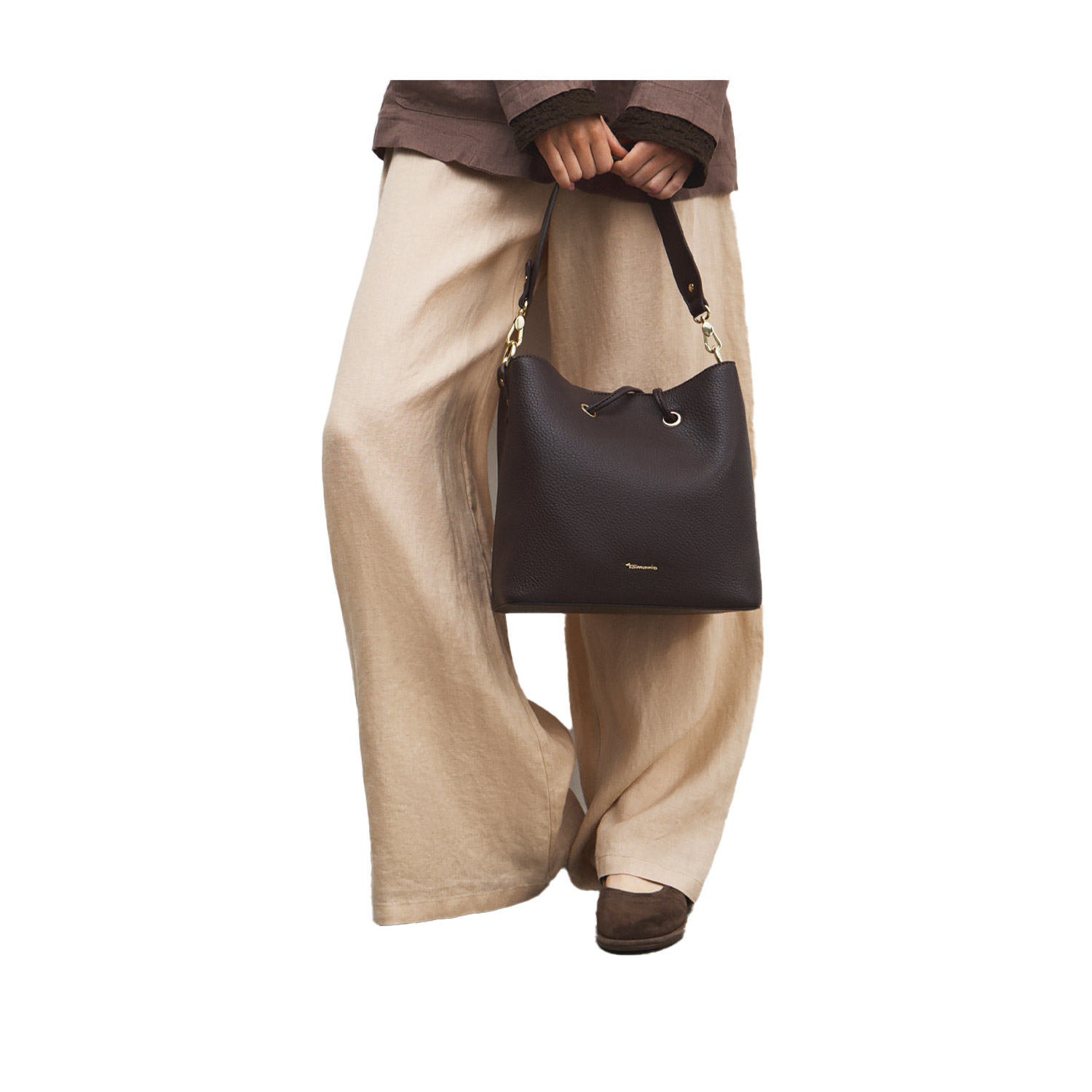 Tamaris γυναικεία τσάντα ώμου, σε καφέ χρώμα, κατασκευασμένη από οικολογικό δέρμα. Ύψος 27εκ., Μήκος 17εκ.