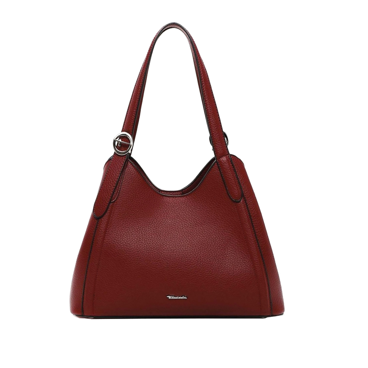 Tamaris γυναικεία τσάντα ώμου, σε κόκκινο χρώμα, κατασκευασμένη από οικολογικό δέρμα. Ύψος 30.5εκ., Μήκος 28εκ.