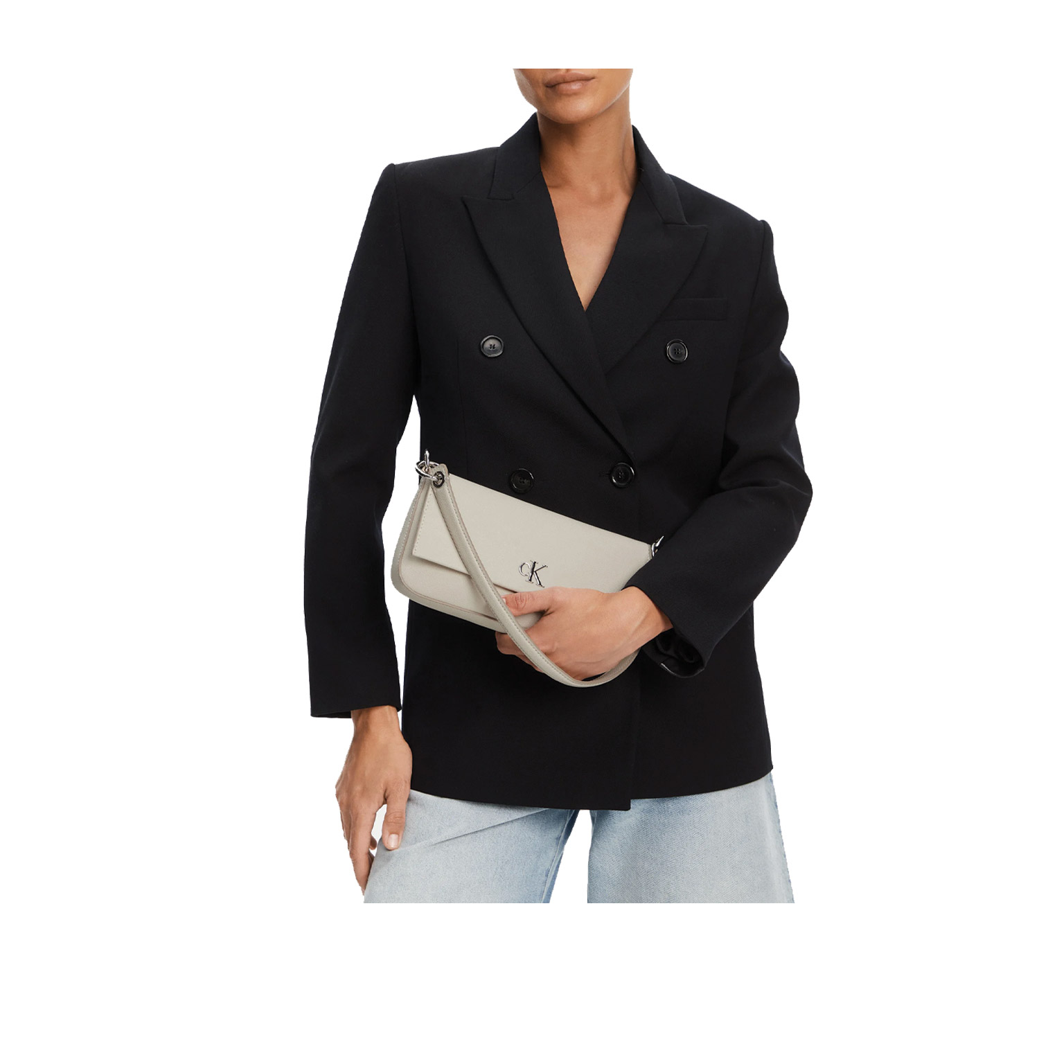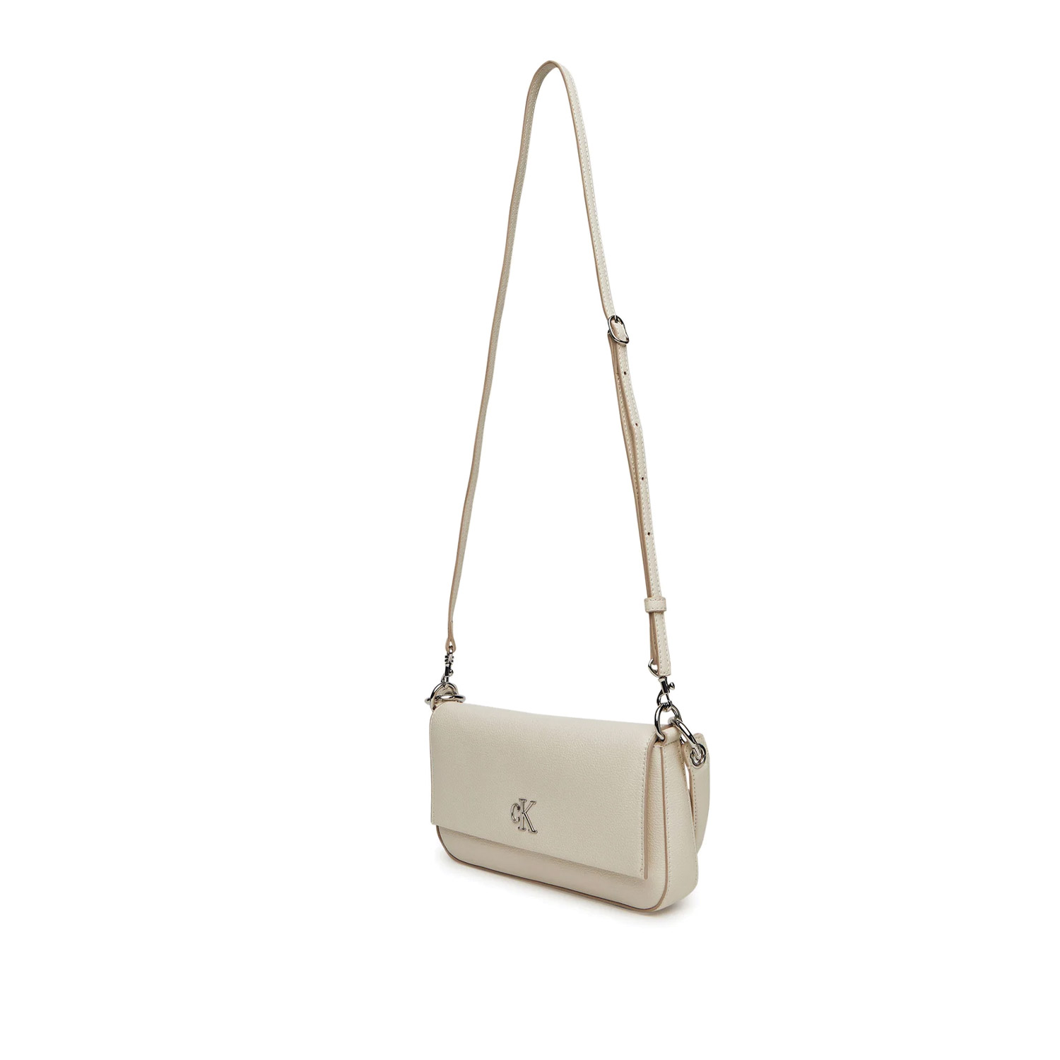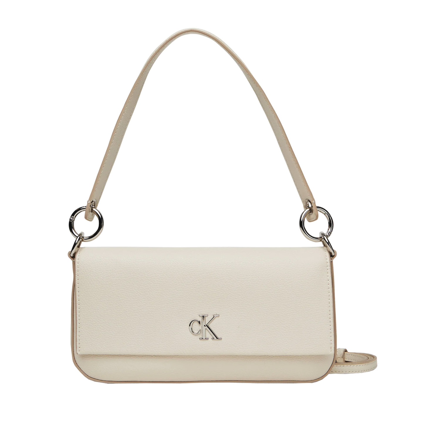 Calvin Klein γυναικεία τσάντα ώμου, σε εκρού χρώμα, κατασκευασμένη από οικολογικό δέρμα. Ύψος 13εκ., Μήκος 25εκ.