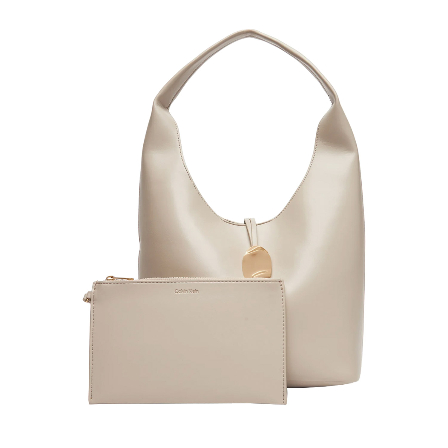 Calvin Klein γυναικεία τσάντα ώμου, σε ταουπέ χρώμα, κατασκευασμένη από οικολογικό δέρμα. Ύψος 18εκ., Μήκος 23εκ.