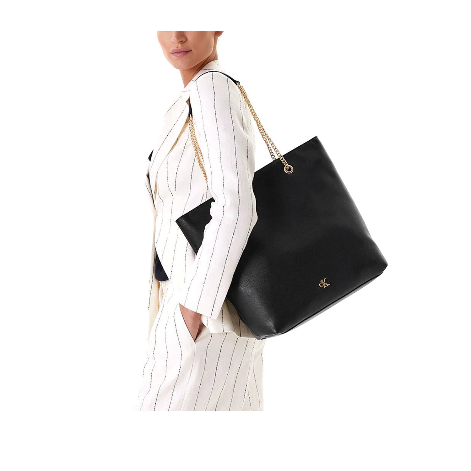 Calvin Klein γυναικεία τσάντα ώμου, σε μαύρο χρώμα, κατασκευασμένη από οικολογικό δέρμα. Ύψος 48εκ., Μήκος 28εκ.