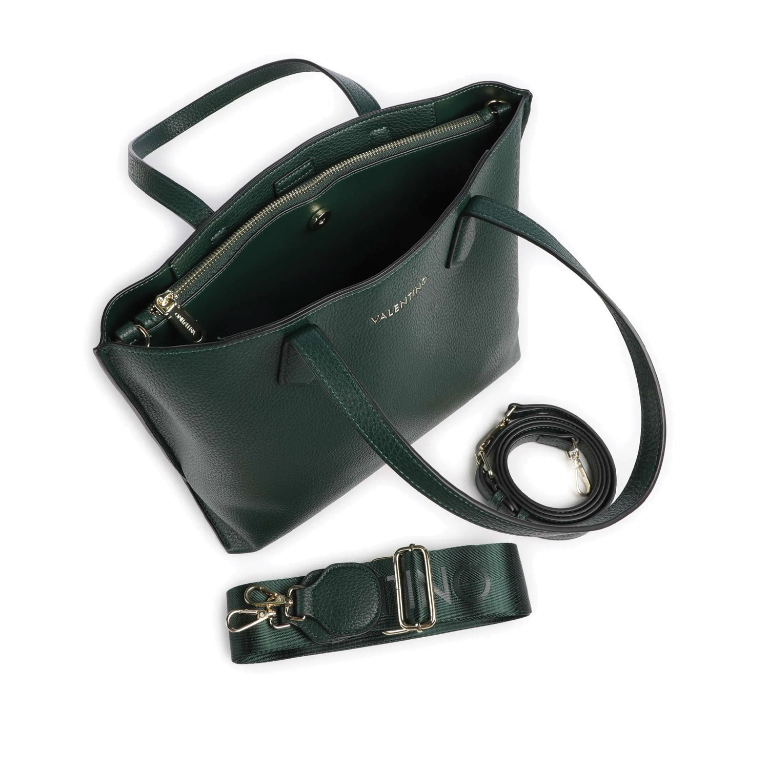 Valentino γυναικεία τσάντα ώμου, σε πράσινο χρώμα, κατασκευασμένη από οικολογικό δέρμα. Ύψος 32εκ., Μήκος 34εκ.