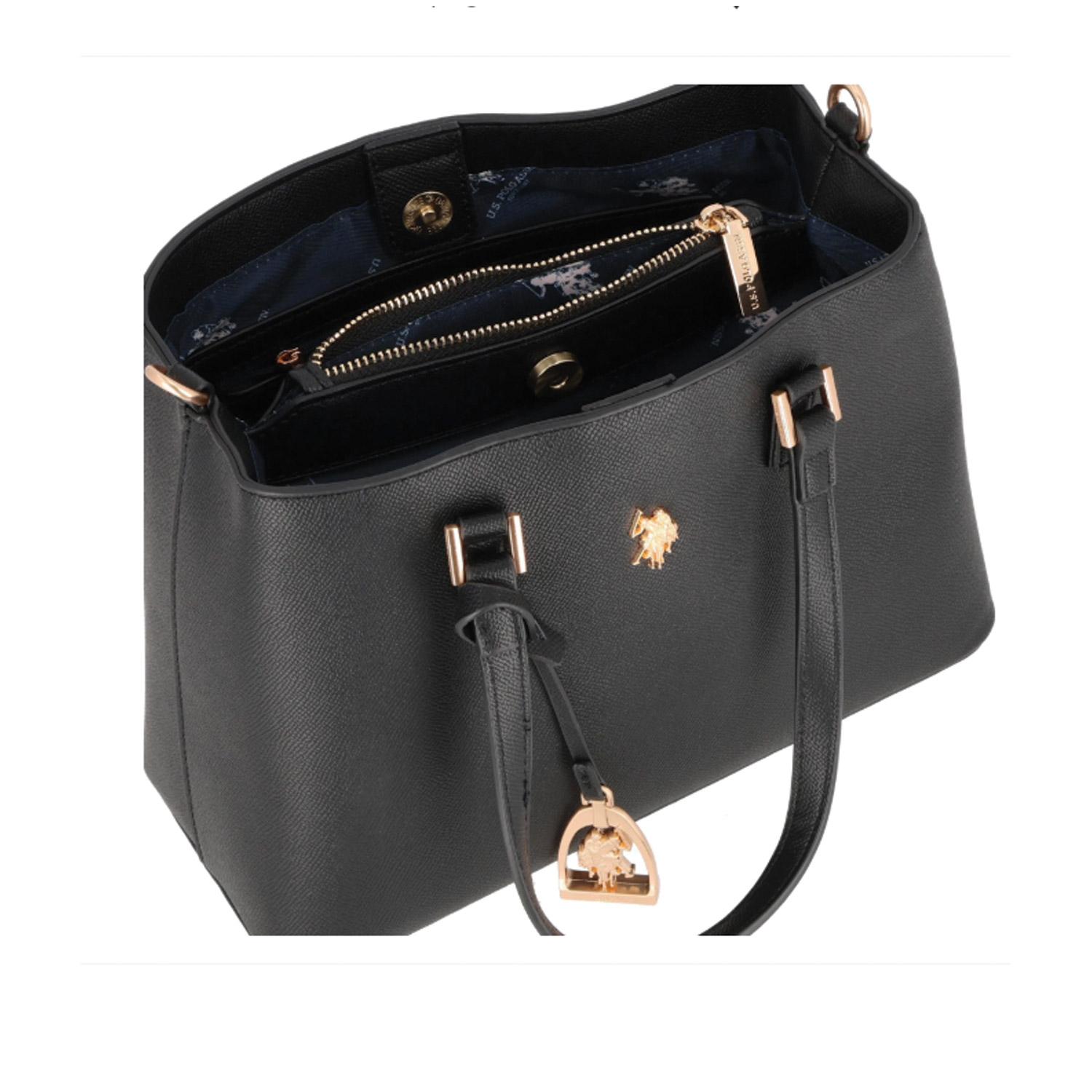 U.S. Polo ASSN γυναικεία τσάντα ώμου, σε μαύρο χρώμα, κατασκευασμένη από οικολογικό δέρμα. Ύψος 30εκ., Μήκος 31εκ.