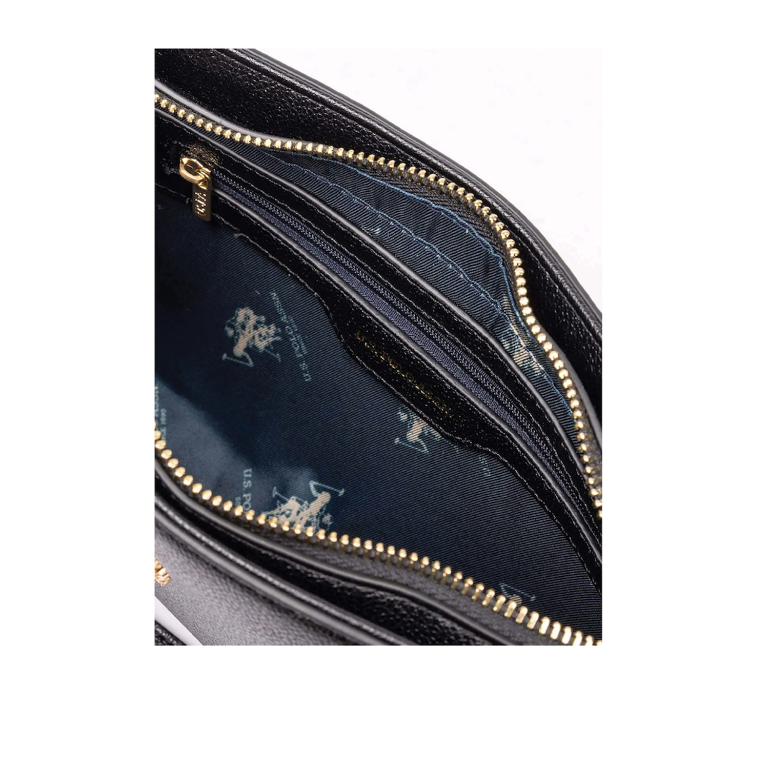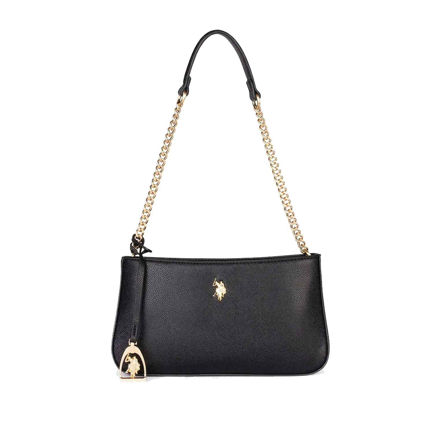 U.S. Polo ASSN γυναικεία τσάντα ώμου, σε μαύρο χρώμα, κατασκευασμένη από οικολογικό δέρμα. Ύψος 15εκ., Μήκος 28εκ.