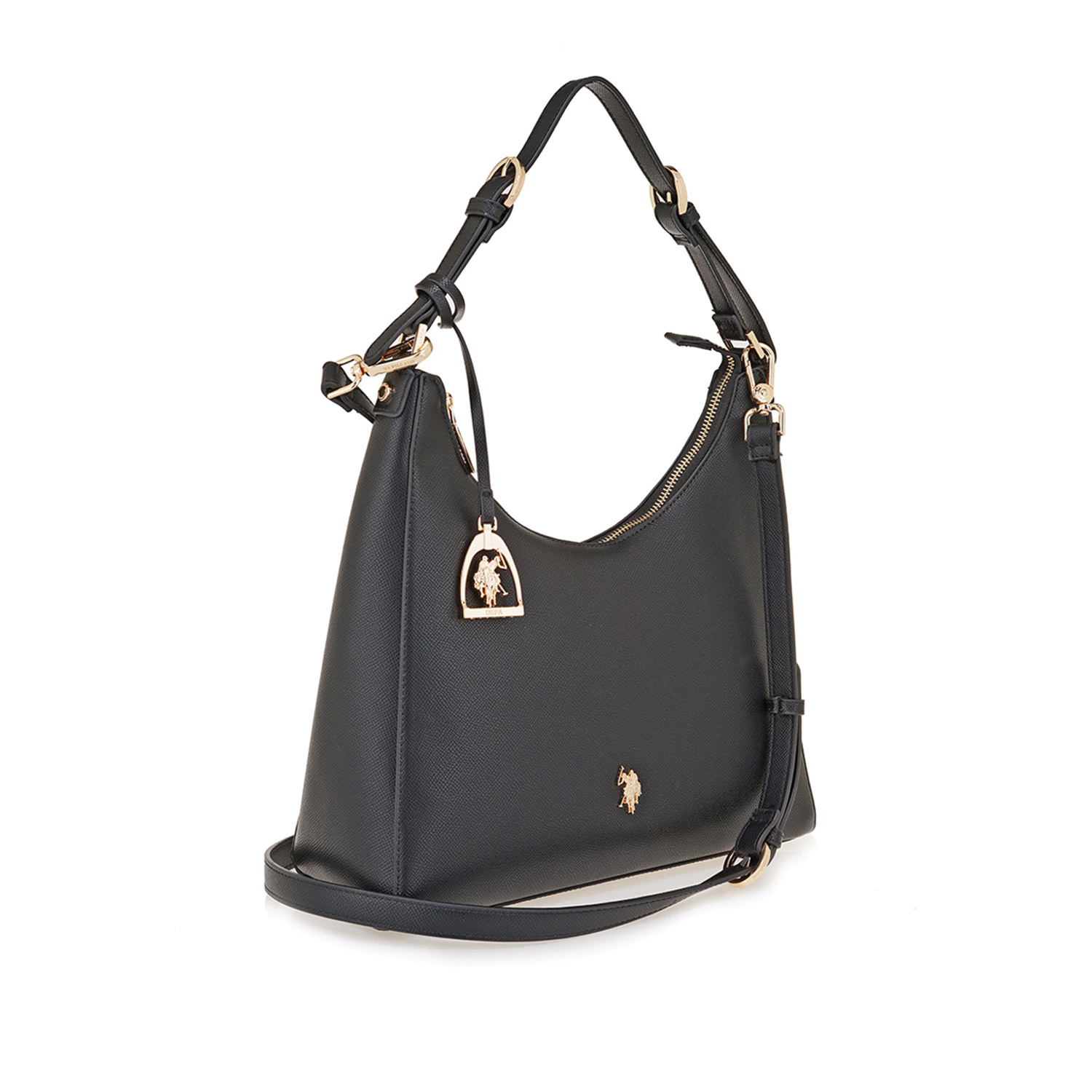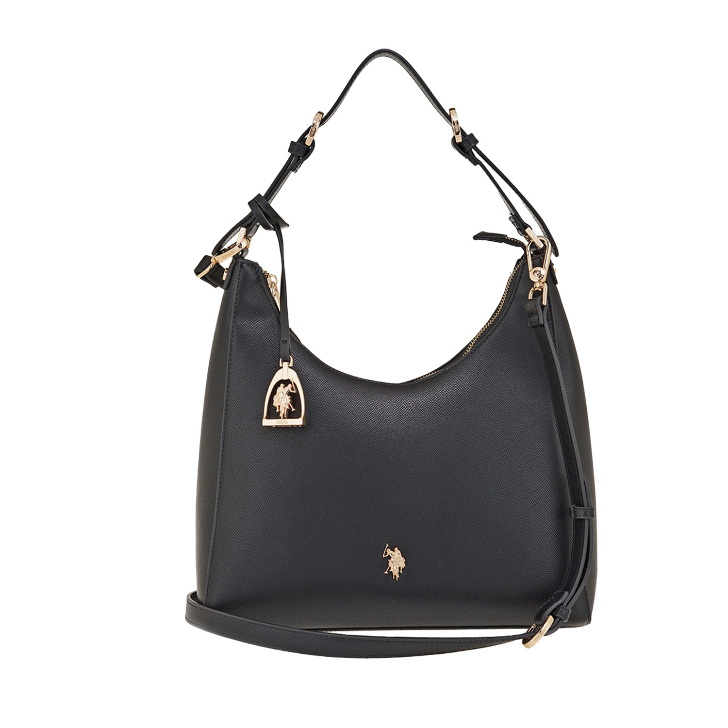 U.S. Polo ASSN γυναικεία τσάντα ώμου, σε μαύρο χρώμα, κατασκευασμένη από οικολογικό δέρμα. Ύψος 27εκ., Μήκος 34εκ.