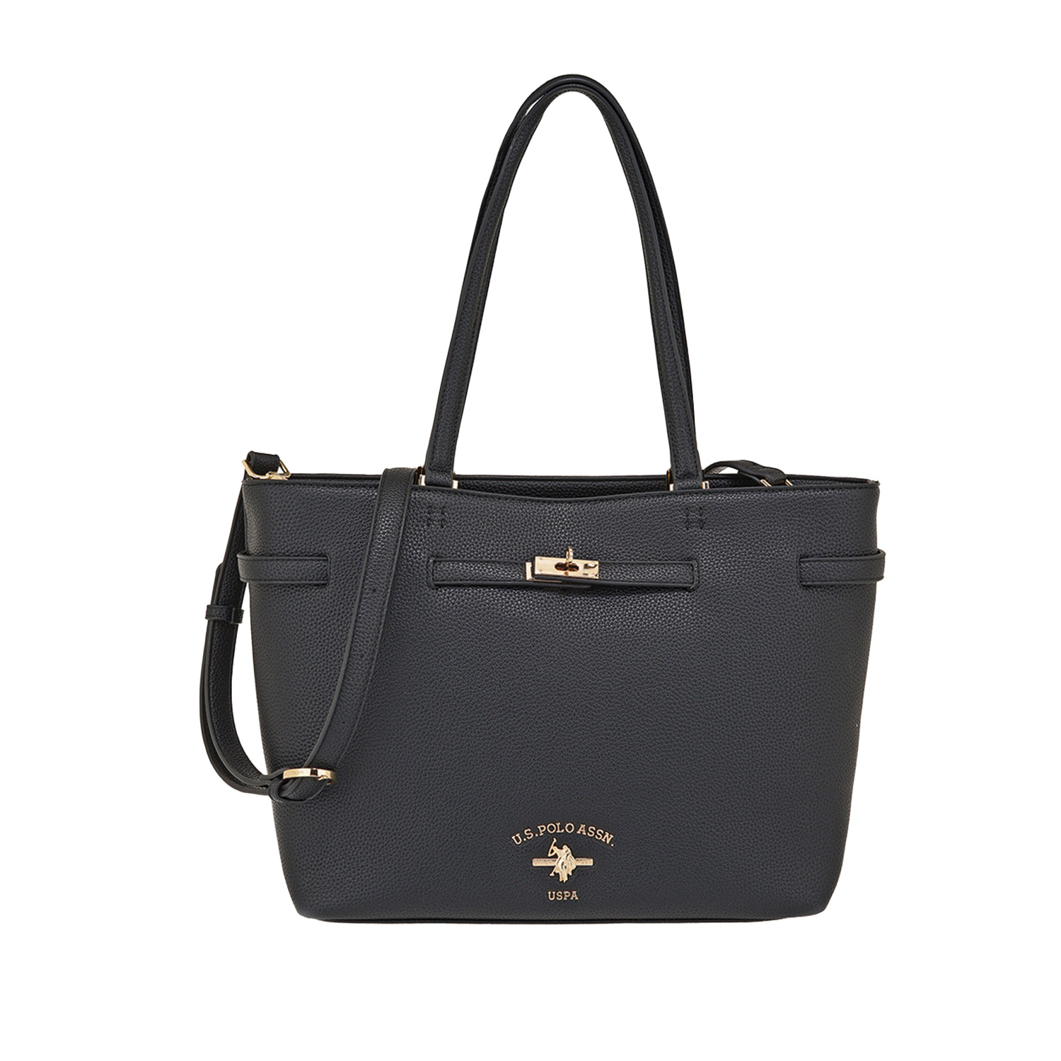 U.S. Polo ASSN γυναικεία τσάντα ώμου, σε μαύρο χρώμα, κατασκευασμένη από οικολογικό δέρμα. Ύψος 29εκ., Μήκος 38εκ.