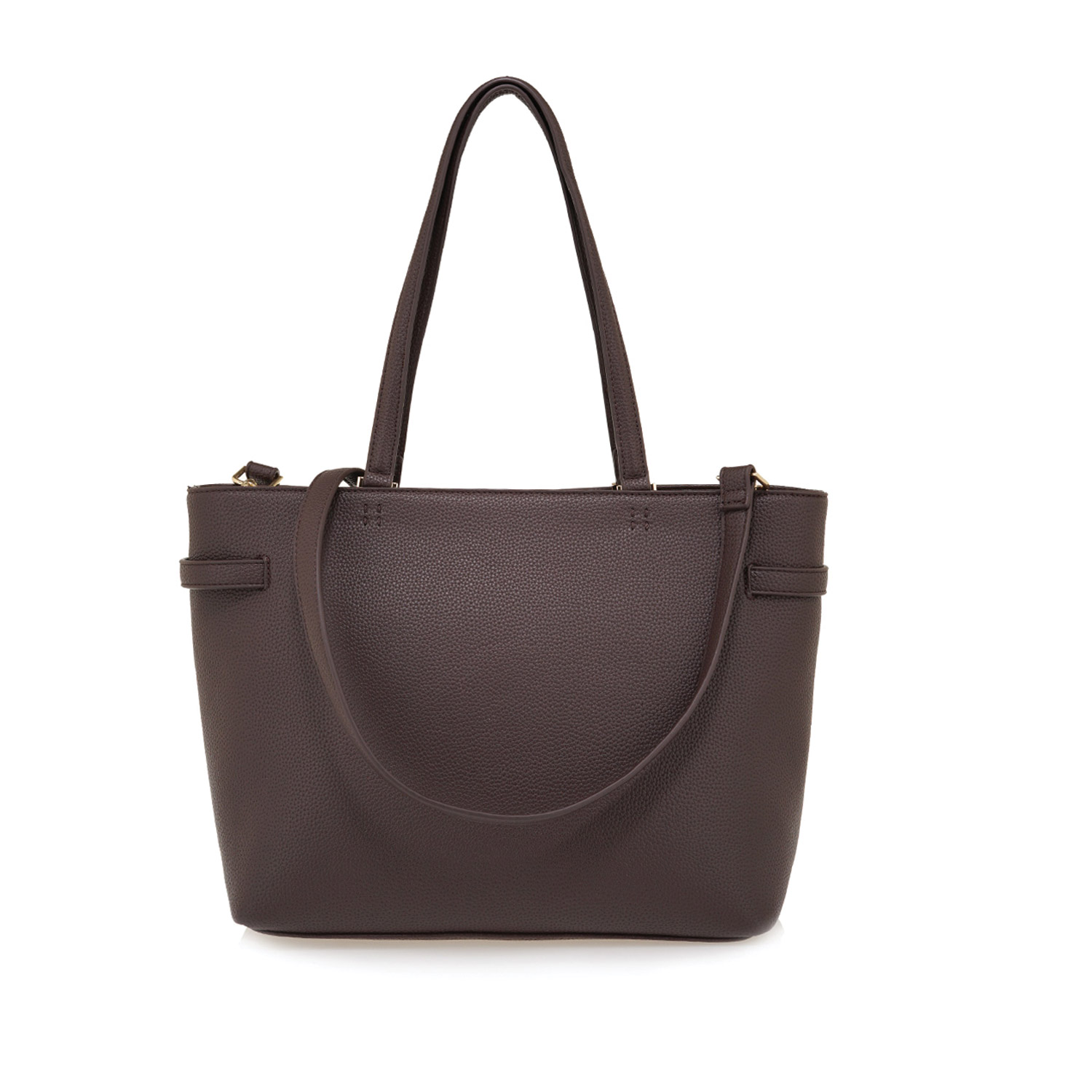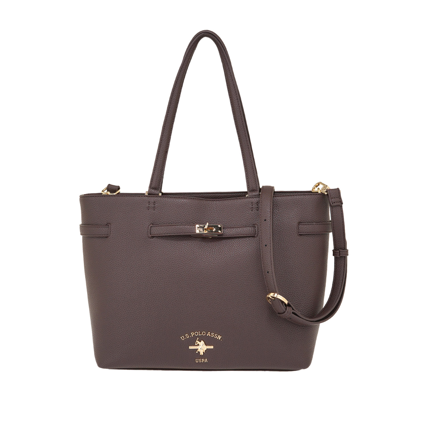 U.S. Polo ASSN γυναικεία τσάντα ώμου, σε καφέ χρώμα, κατασκευασμένη από οικολογικό δέρμα. Ύψος 29εκ., Μήκος 38εκ.