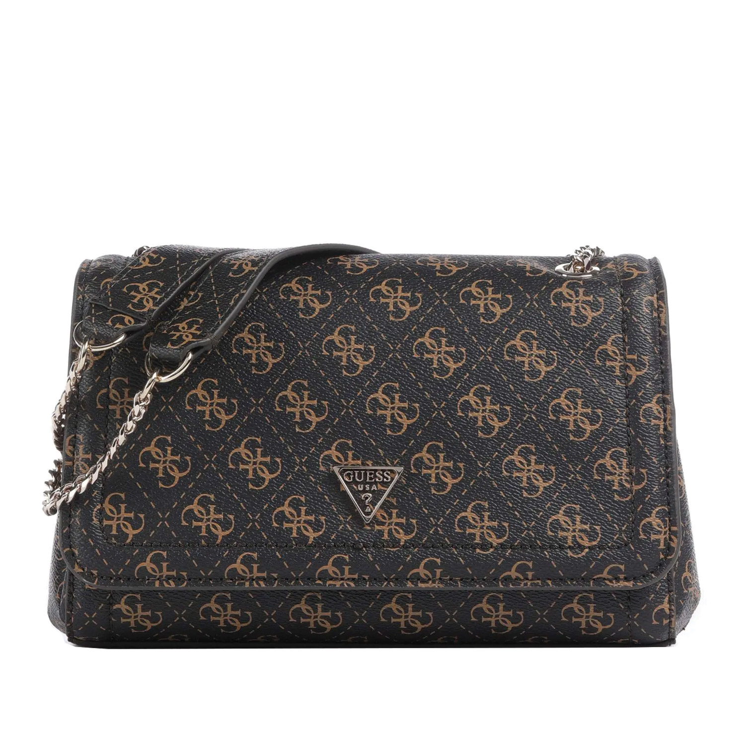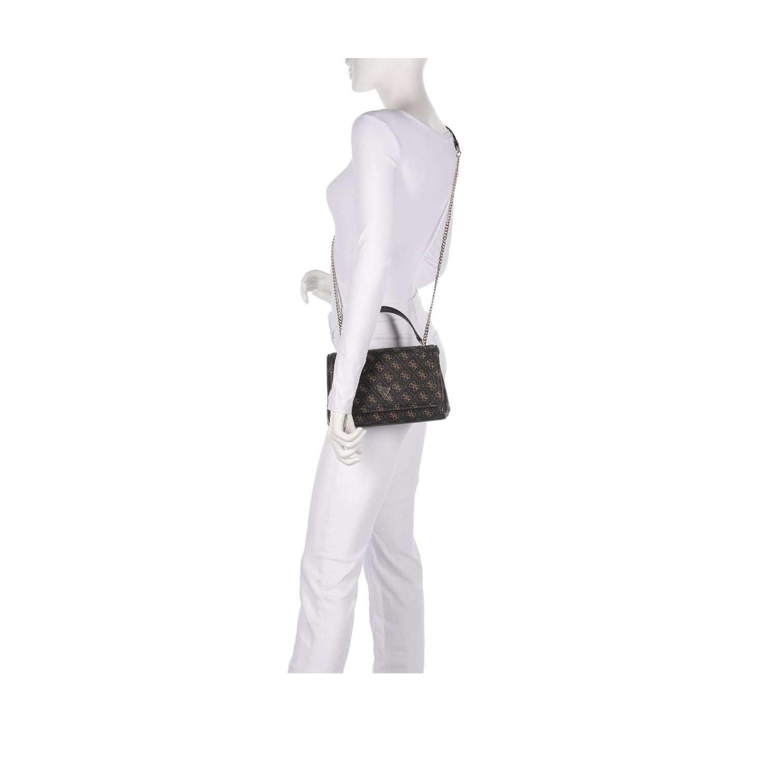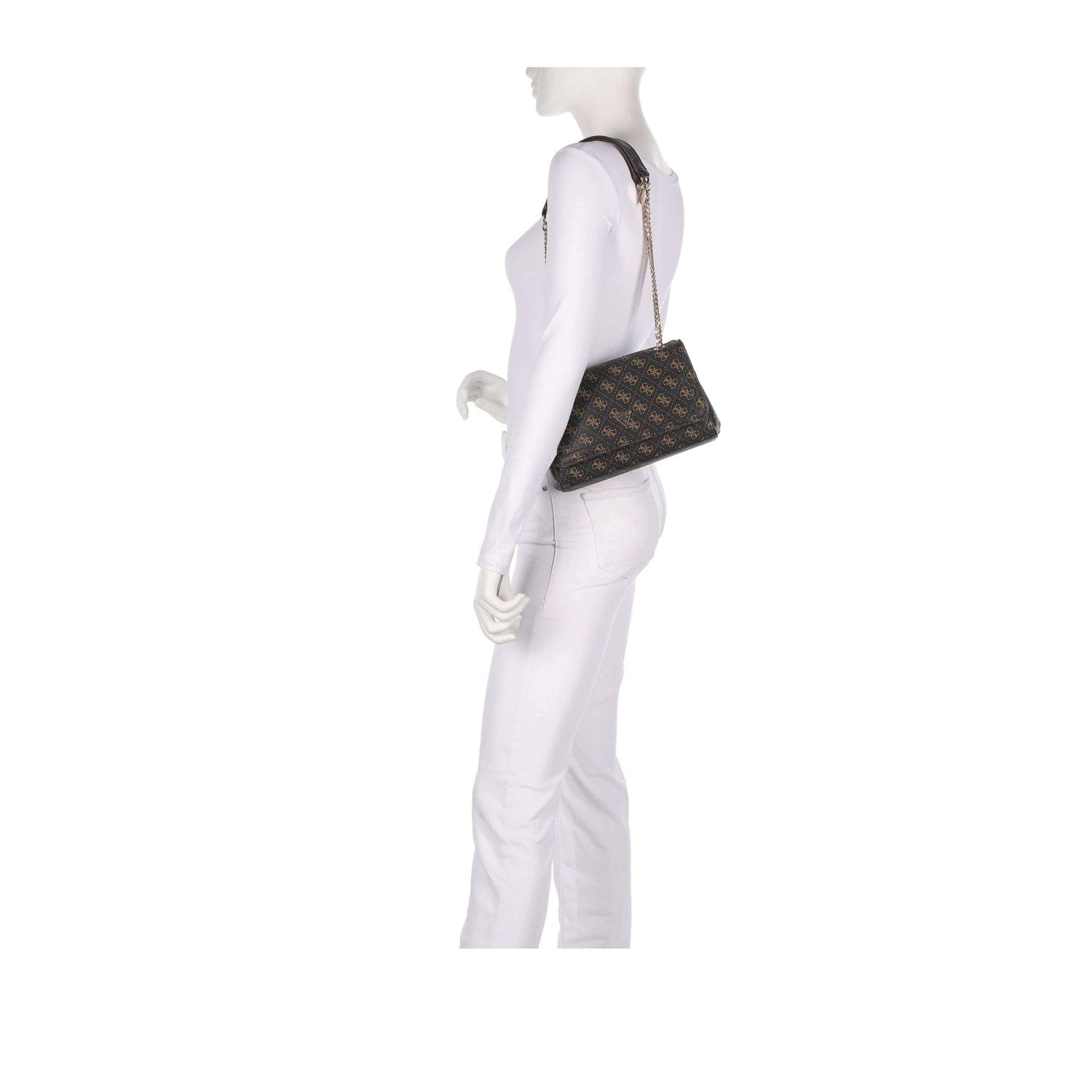Guess γυναικεία τσάντα ώμου, σε καφέ χρώμα, κατασκευασμένη από οικολογικό δέρμα. Ύψος 17εκ., Μήκος 24εκ.