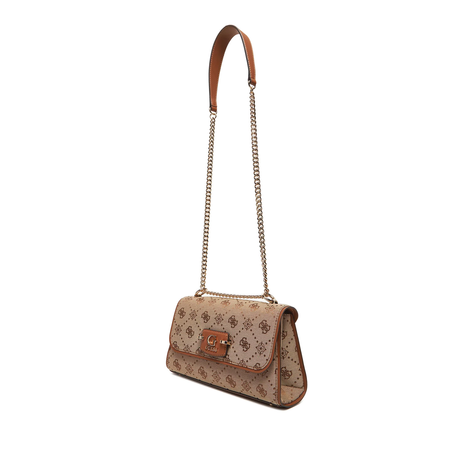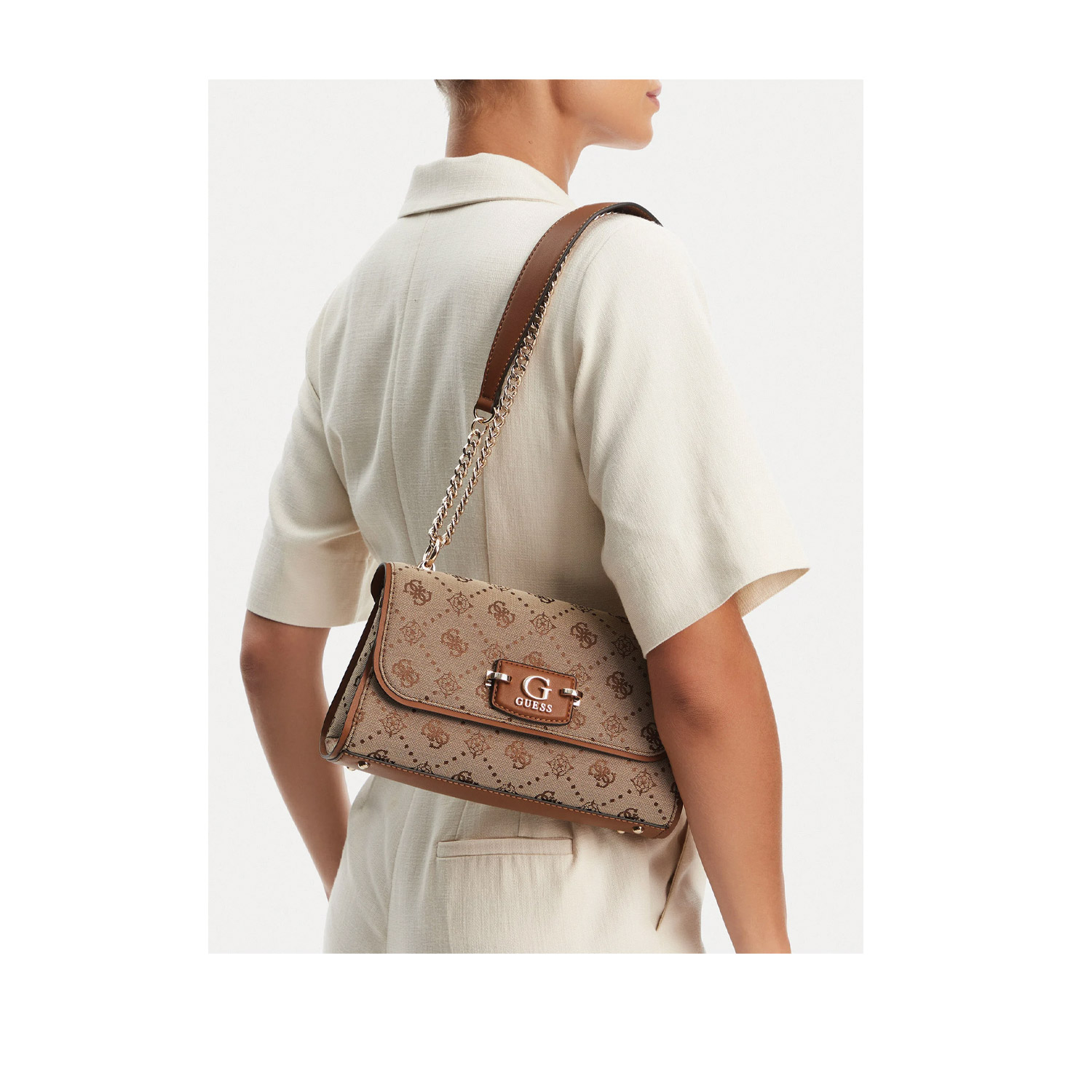 Guess γυναικεία τσάντα ώμου, σε μπεζ χρώμα, κατασκευασμένη από οικολογικό δέρμα. Ύψος 14εκ., Μήκος 27εκ.