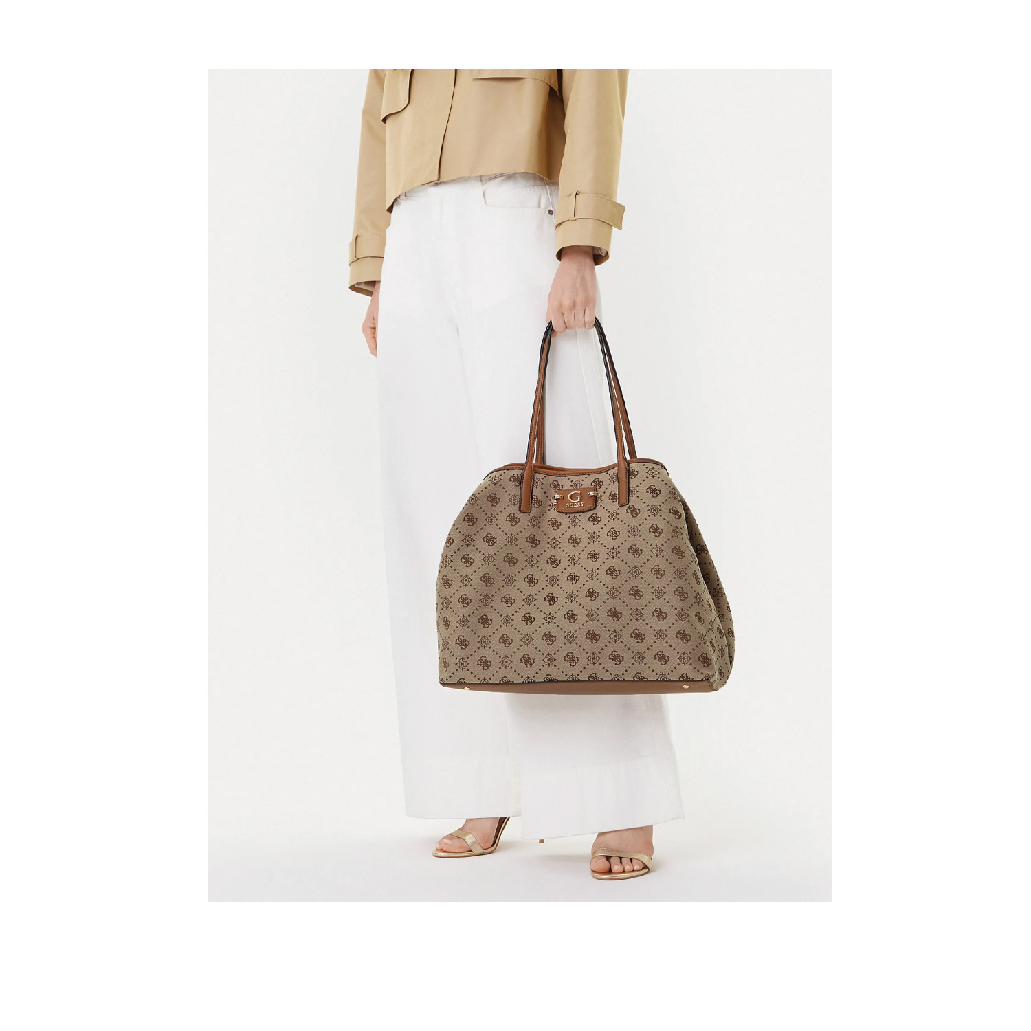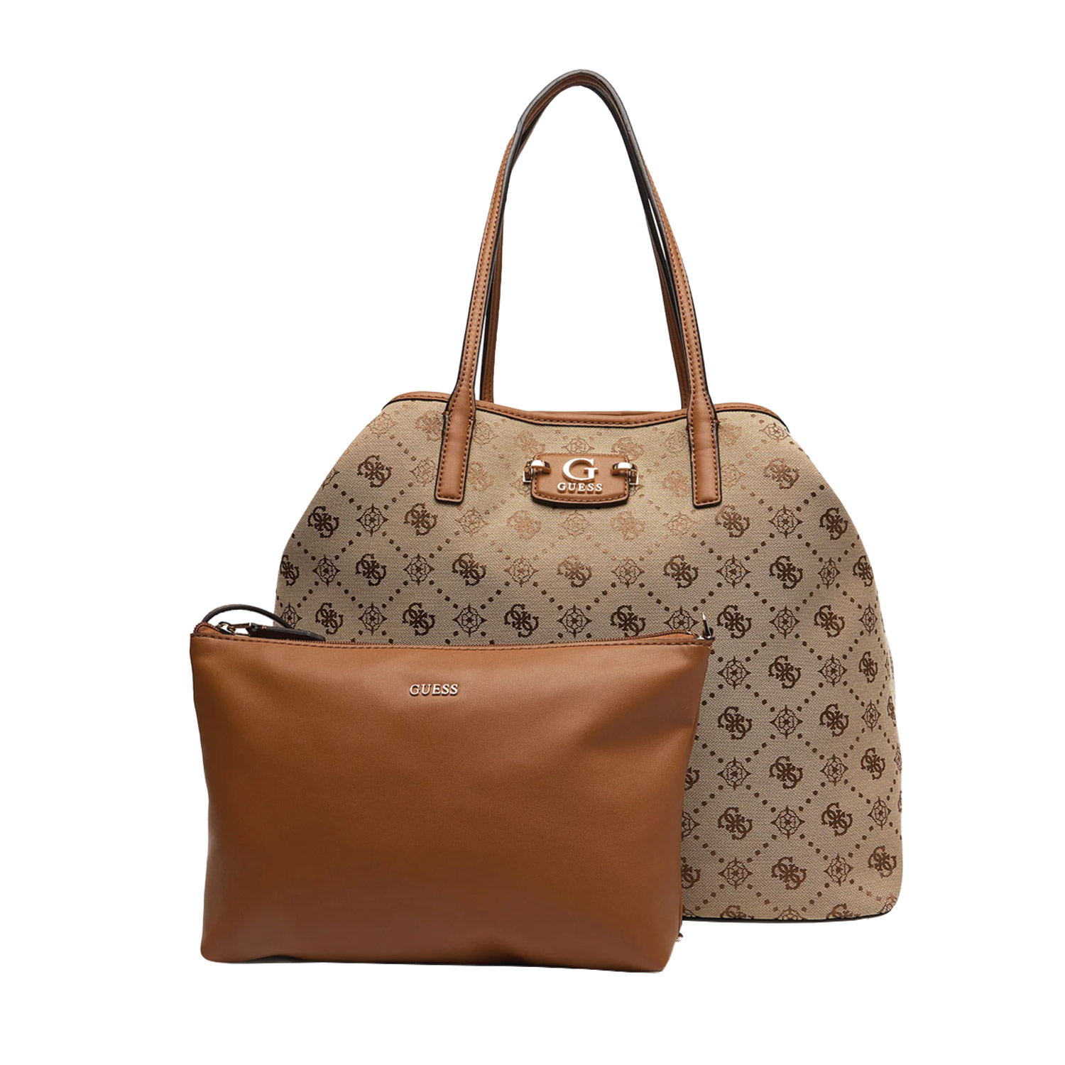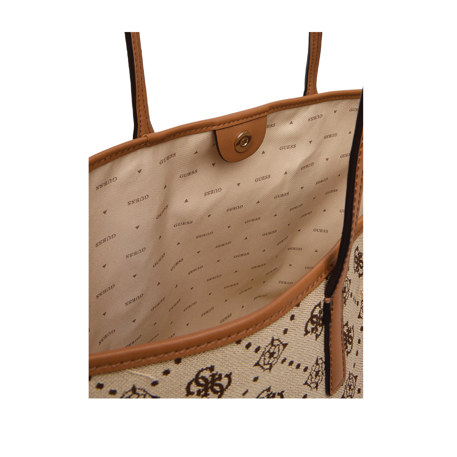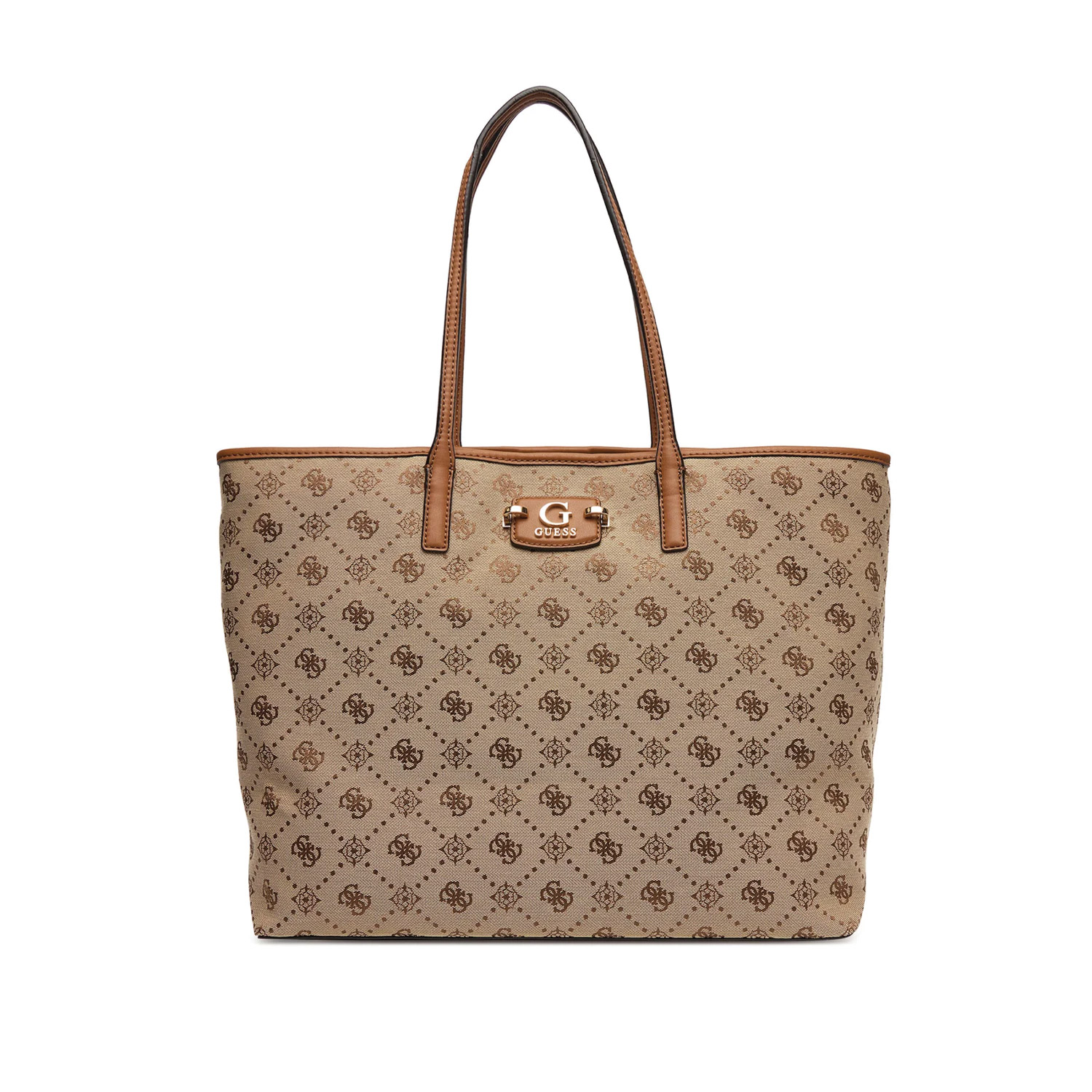 Guess γυναικεία τσάντα ώμου, σε μπεζ χρώμα, κατασκευασμένη από οικολογικό δέρμα. Ύψος 34εκ., Μήκος 40εκ.