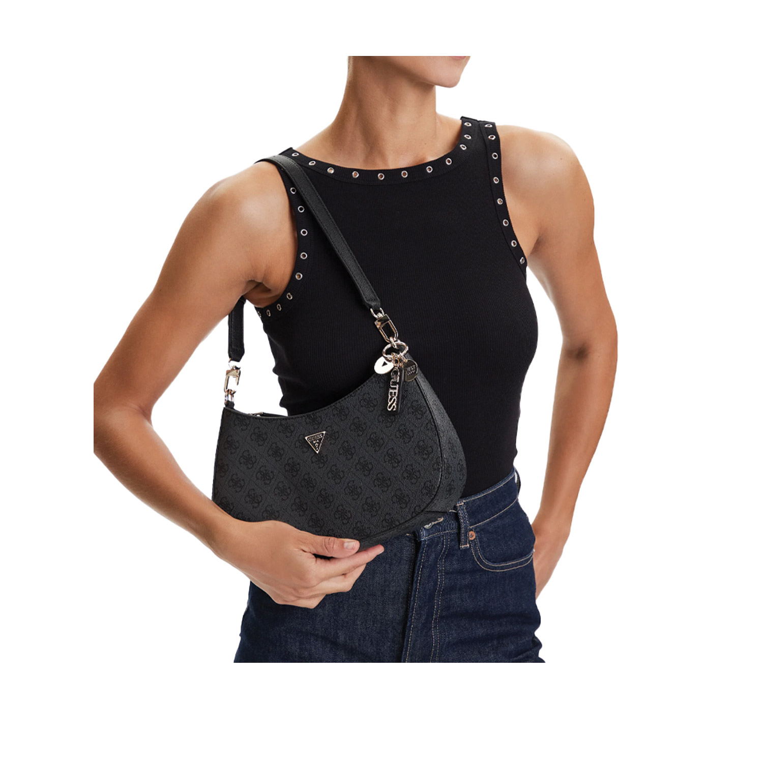 Guess γυναικεία τσάντα ώμου, σε coal χρώμα, κατασκευασμένη από οικολογικό δέρμα. Ύψος 18εκ., Μήκος 29εκ.