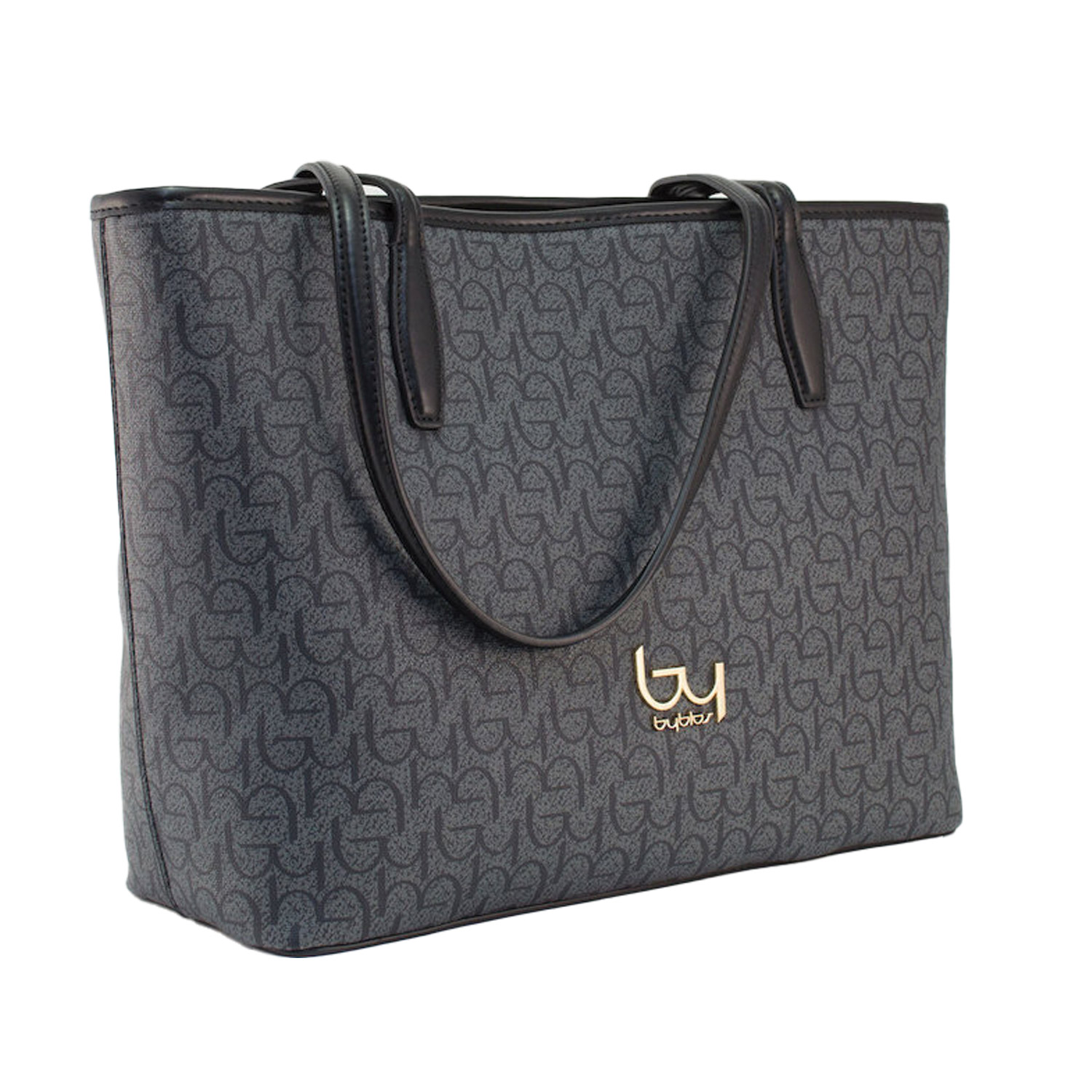 Byblos γυναικεία τσάντα ώμου, σε coal χρώμα, κατασκευασμένη από οικολογικό δέρμα. Ύψος 26εκ., Μήκος 33εκ.