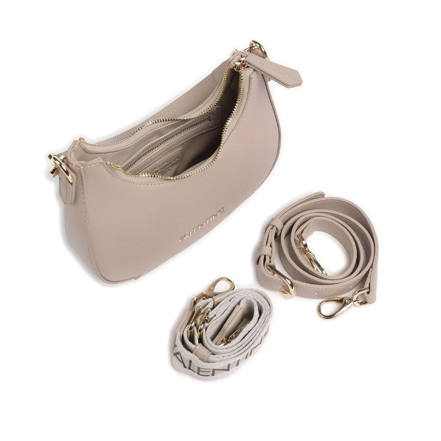 Valentino γυναικεία τσάντα ώμου, σε μπεζ χρώμα, κατασκευασμένη από οικολογικό δέρμα. Ύψος 18εκ., Μήκος 22εκ.