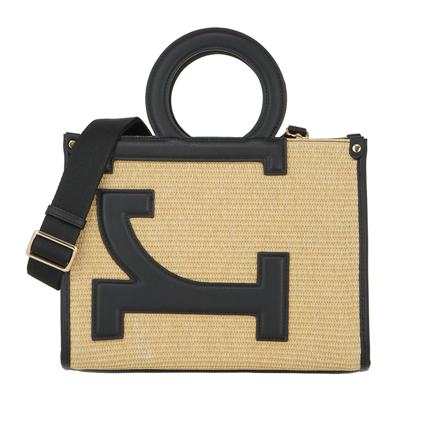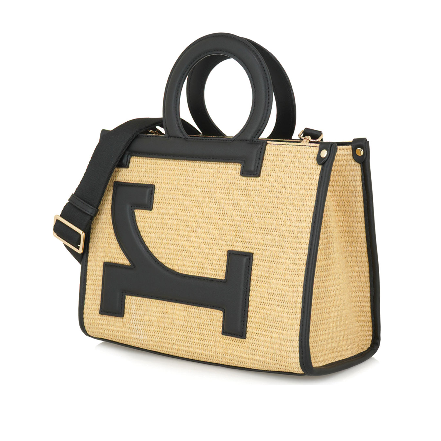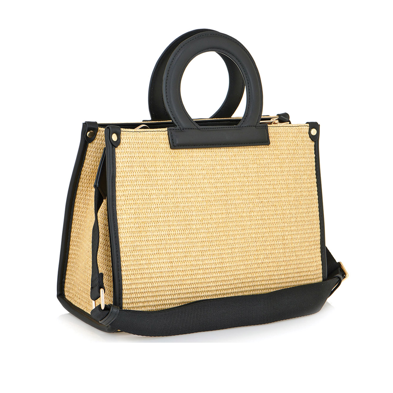 RoccoBarocco γυναικεία τσάντα χειρός, σε ταμπά χρώμα, κατασκευασμένη από ψάθα. Ύψος 24εκ., Μήκος 31εκ.