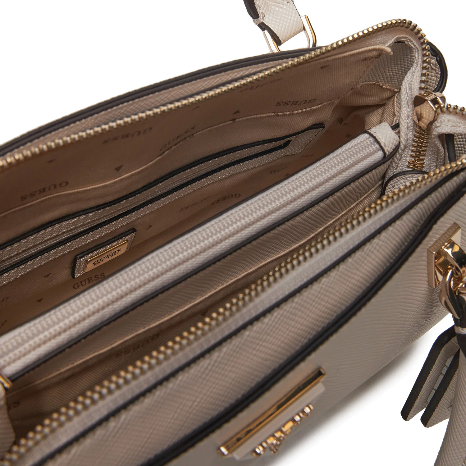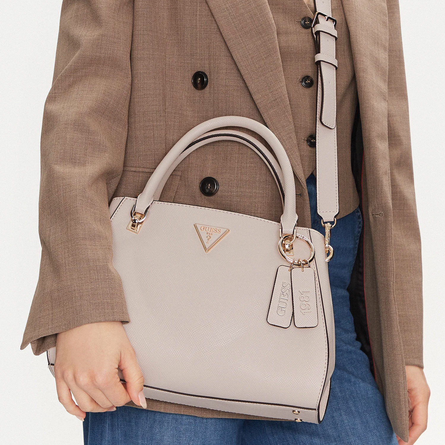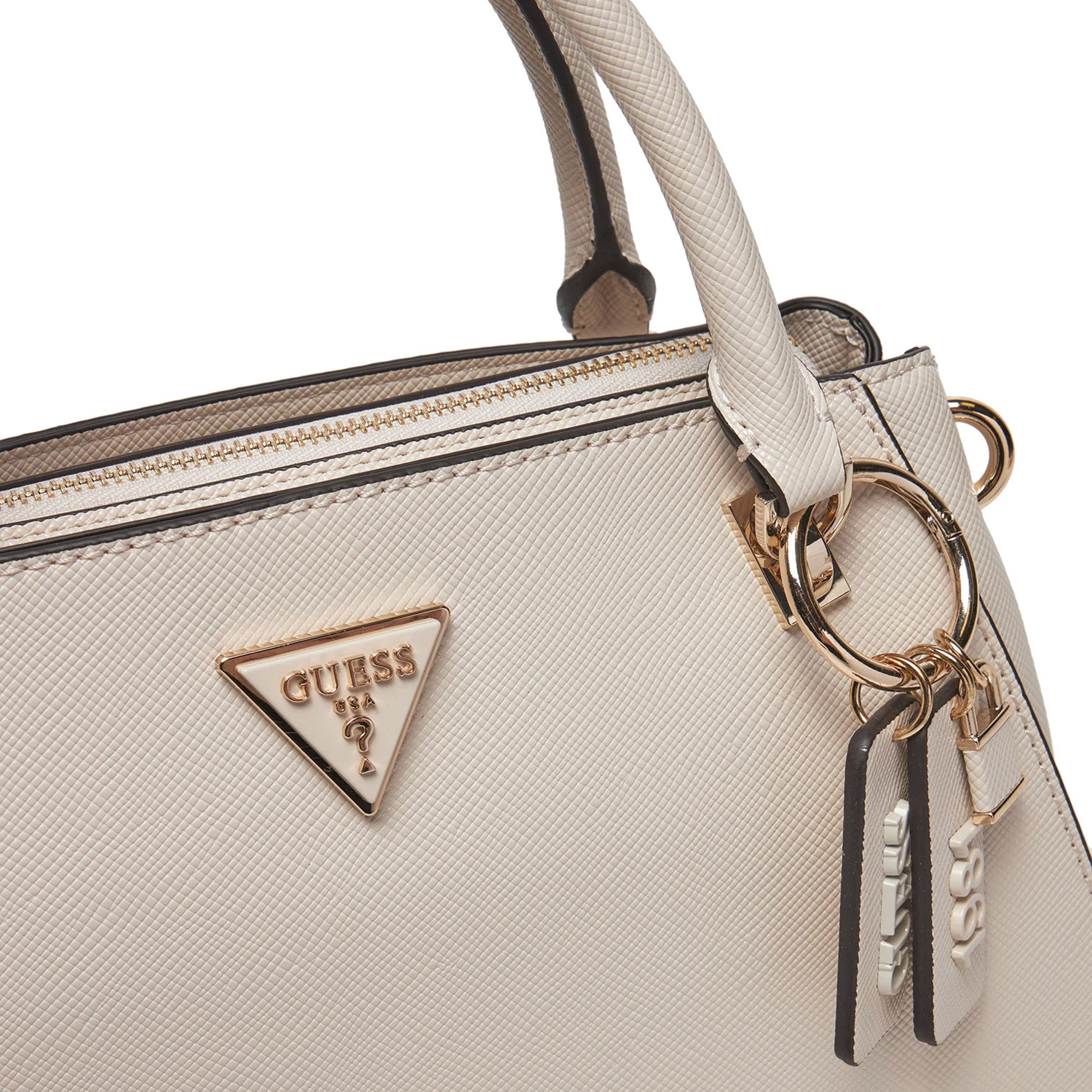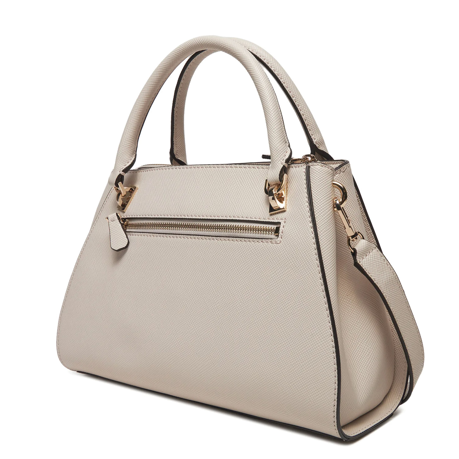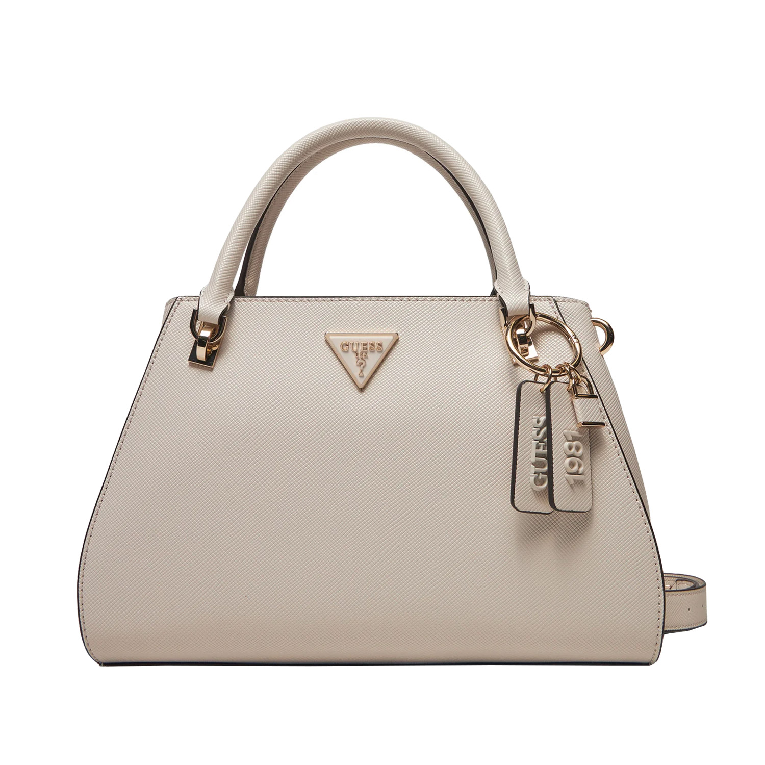 Guess γυναικεία τσάντα χειρός, σε μπεζ χρώμα, κατασκευασμένη από οικολογικό δέρμα. Ύψος 21εκ., Μήκος 31εκ.