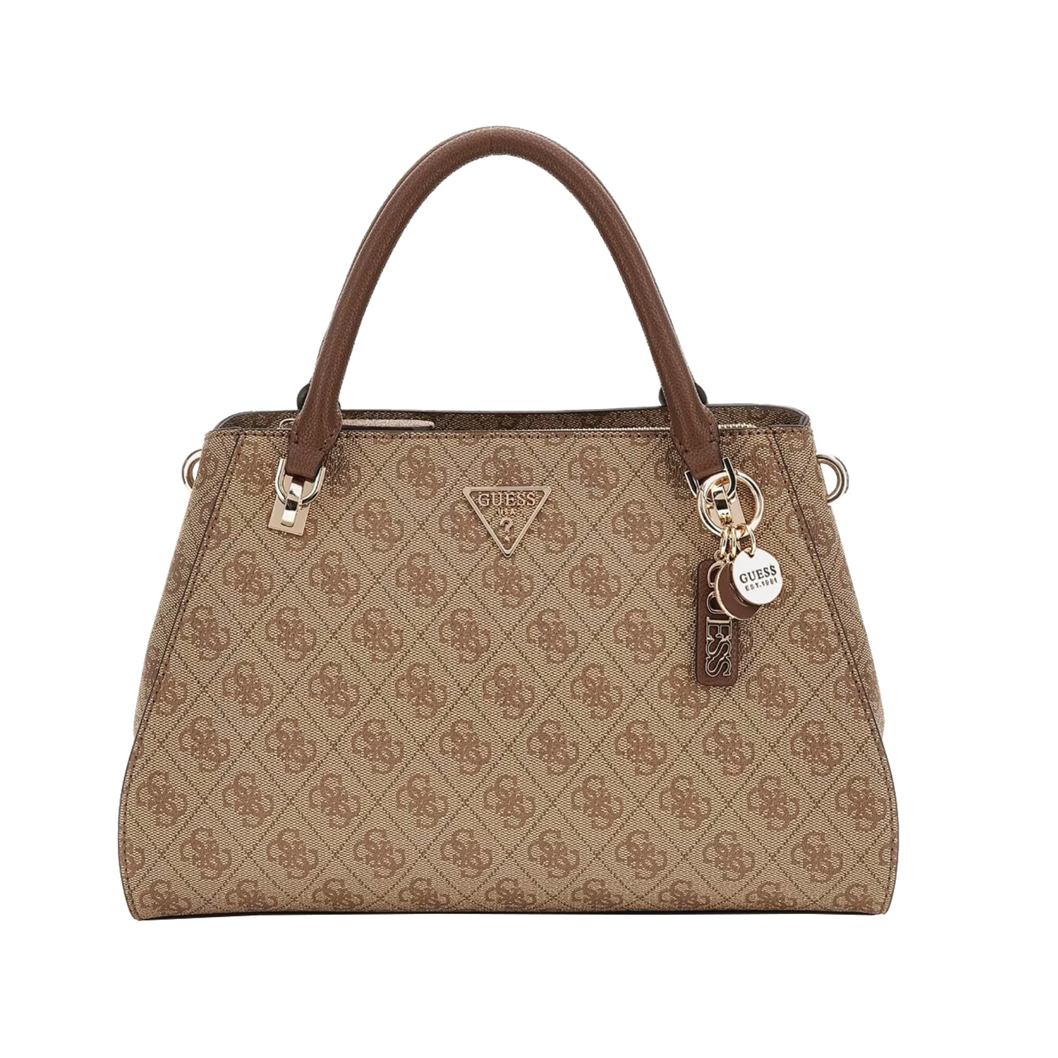 Guess γυναικεία τσάντα χειρός, σε μπεζ χρώμα, κατασκευασμένη από οικολογικό δέρμα. Ύψος 21εκ., Μήκος 31εκ.