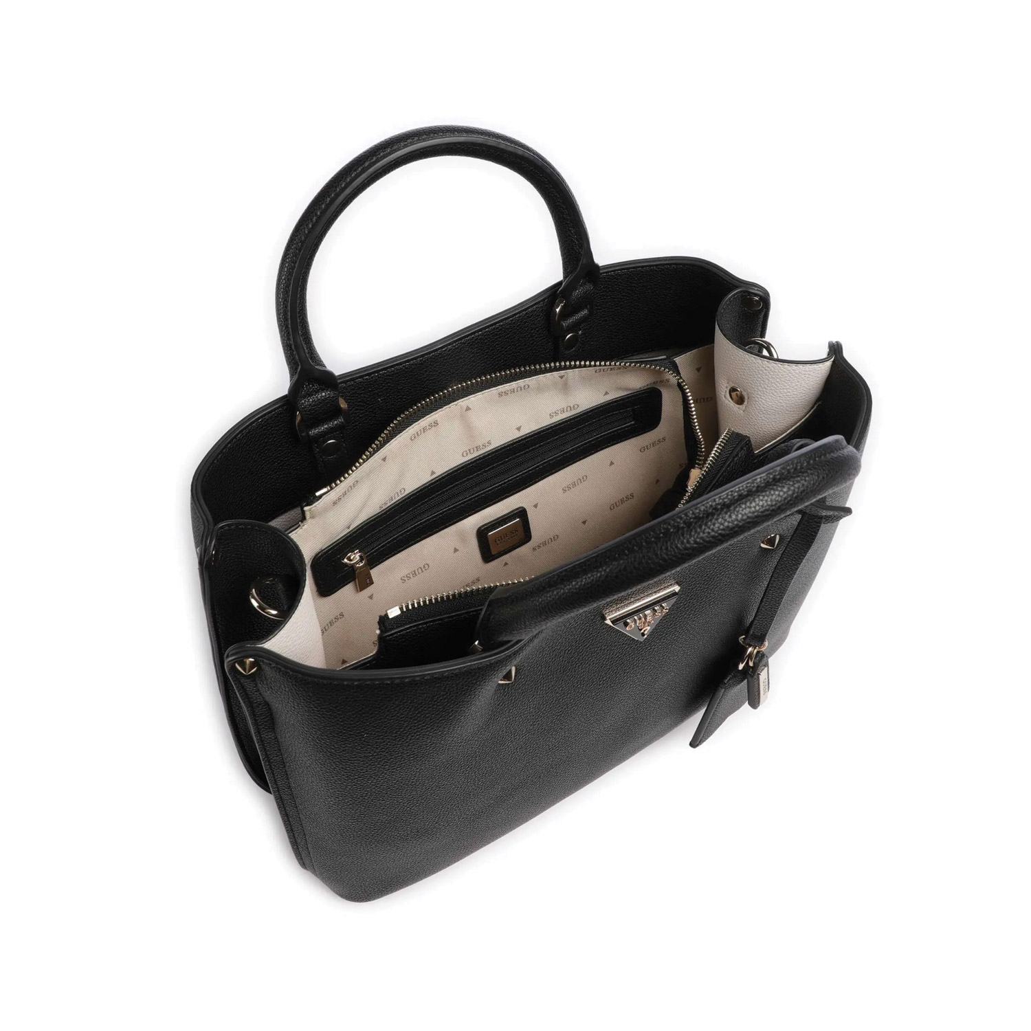 Guess γυναικεία τσάντα χειρός, σε coal χρώμα, κατασκευασμένη από οικολογικό δέρμα. Ύψος 24εκ., Μήκος 30εκ.
