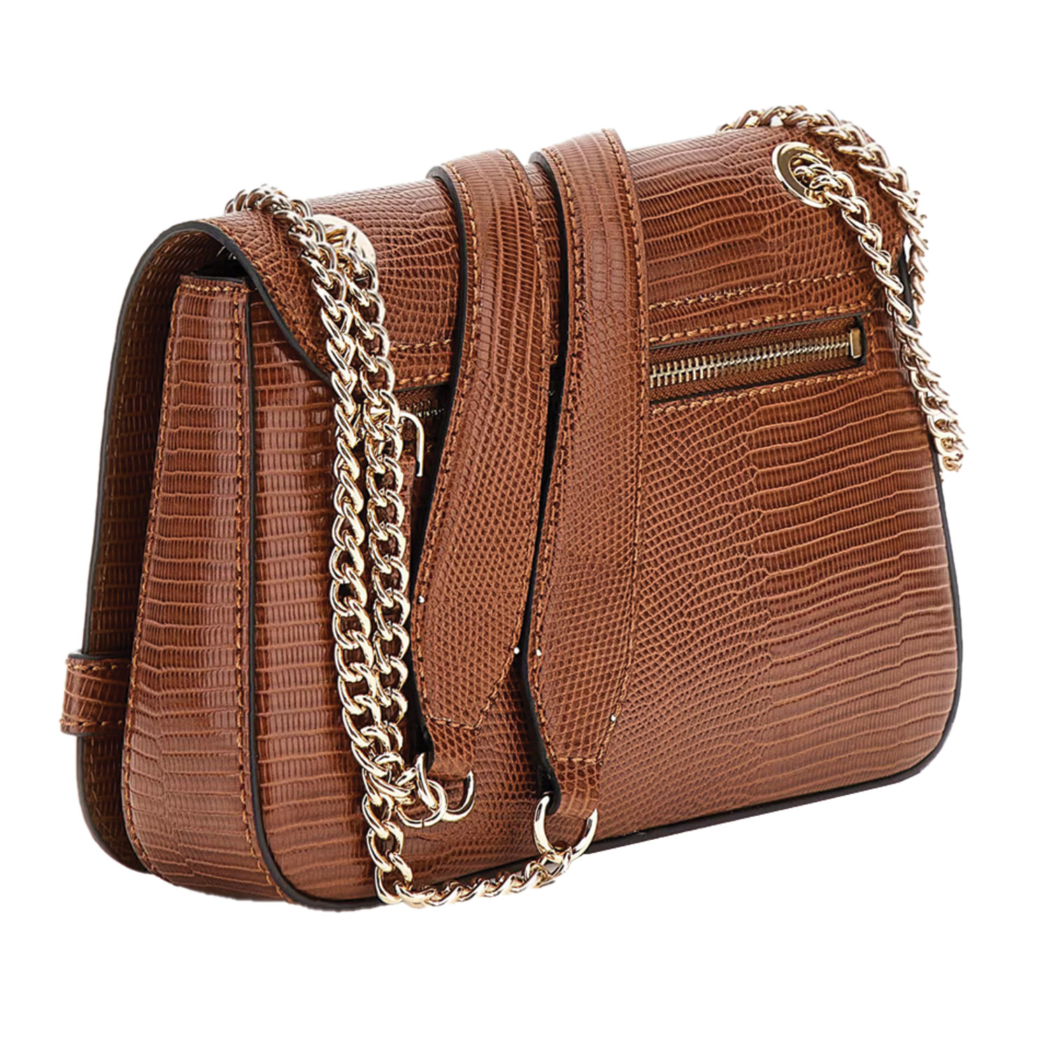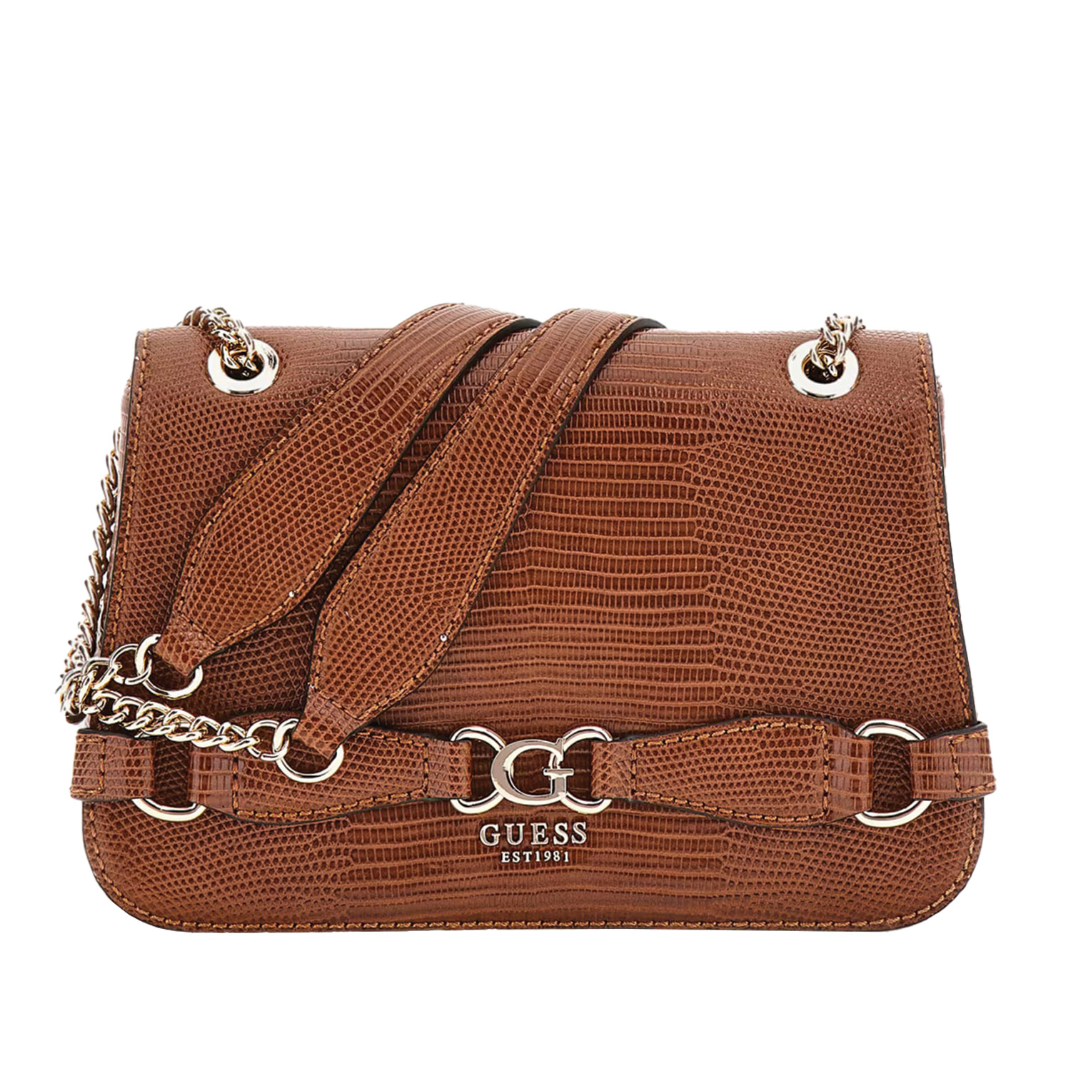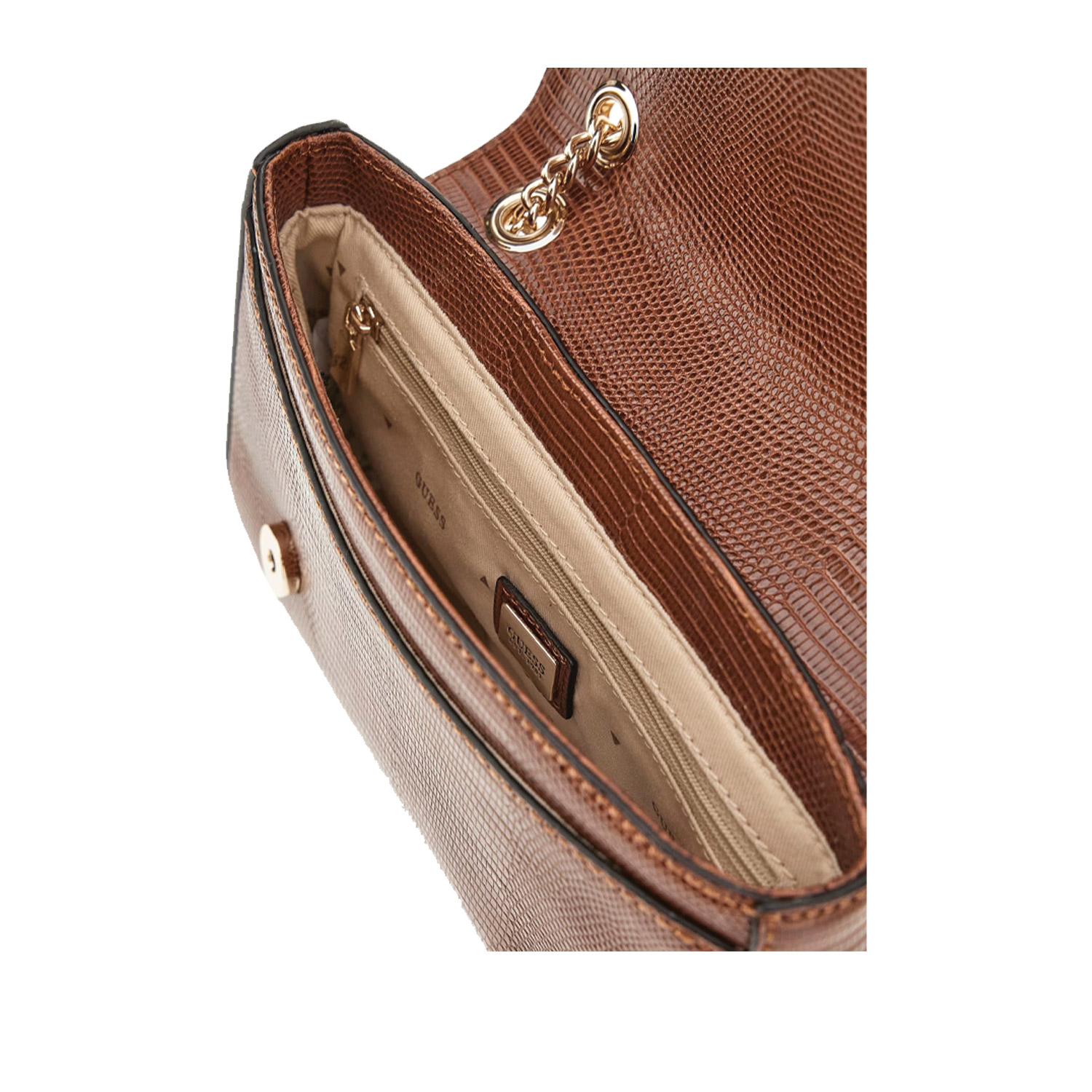 Guess γυναικεία τσάντα χιαστή, σε ταμπά χρώμα, κατασκευασμένη από οικολογικό δέρμα. Ύψος 14εκ., Μήκος 24εκ.
