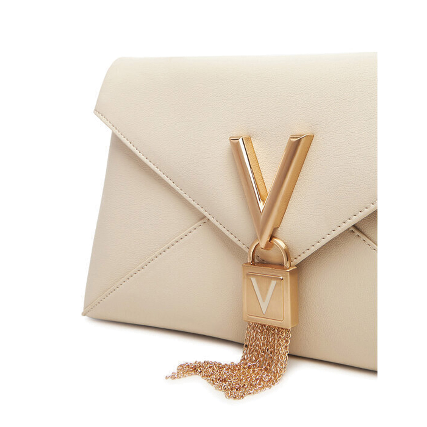 Valentino γυναικεία τσάντα χιαστή, σε εκρού χρώμα, κατασκευασμένη από οικολογικό δέρμα. Ύψος 18εκ., Μήκος 29.5εκ.