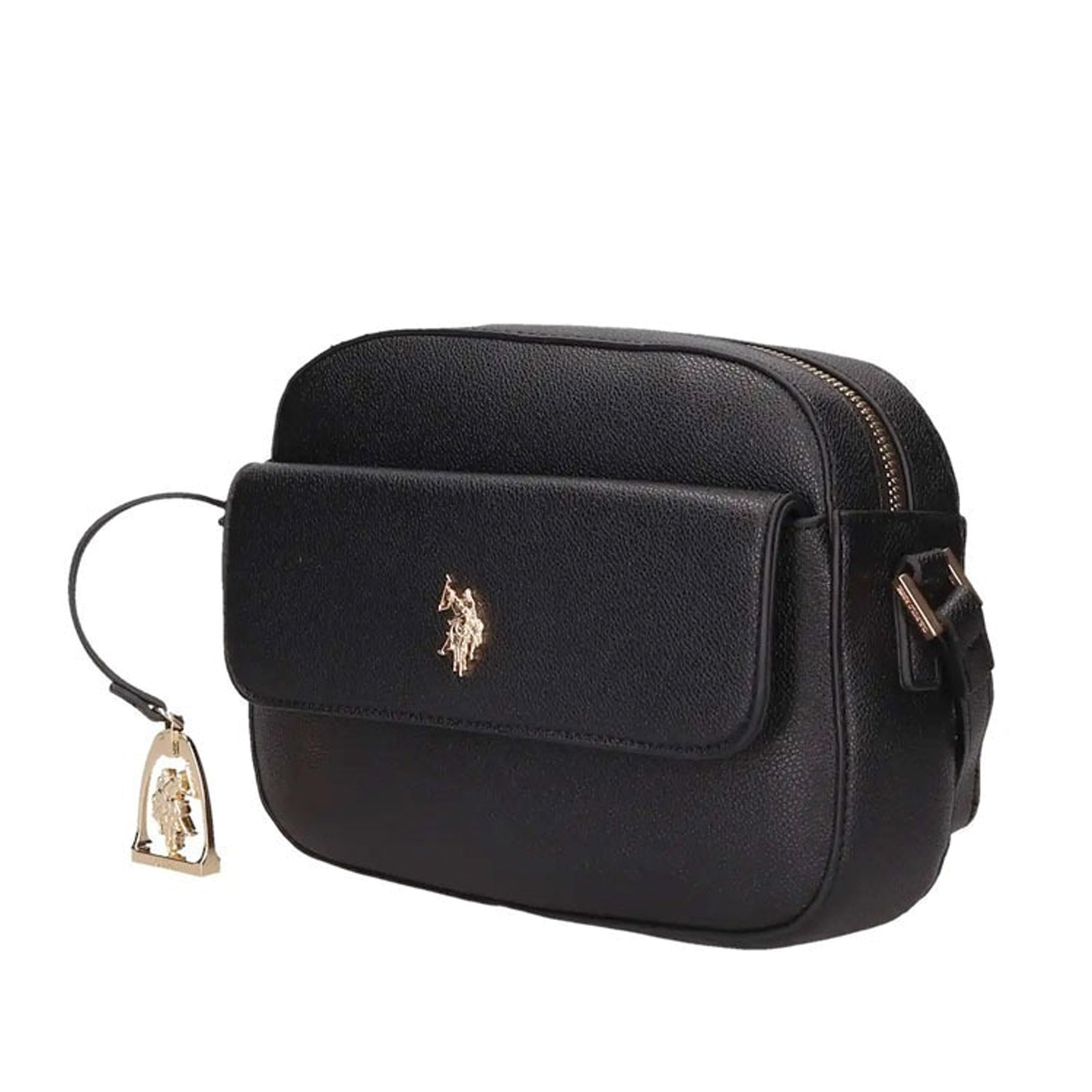 U.S. Polo ASSN γυναικεία τσάντα χιαστή, σε μαύρο χρώμα, κατασκευασμένη από οικολογικό δέρμα. Ύψος 17.5εκ., Μήκος 24εκ.
