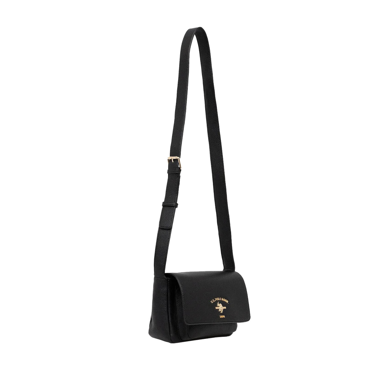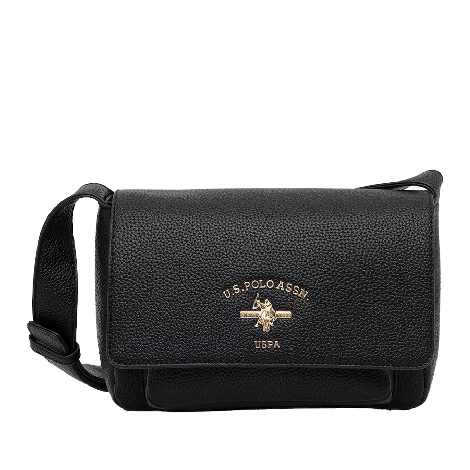 U.S. Polo ASSN γυναικεία τσάντα χιαστή, σε μαύρο χρώμα, κατασκευασμένη από οικολογικό δέρμα. Ύψος 16εκ., Μήκος 22εκ.