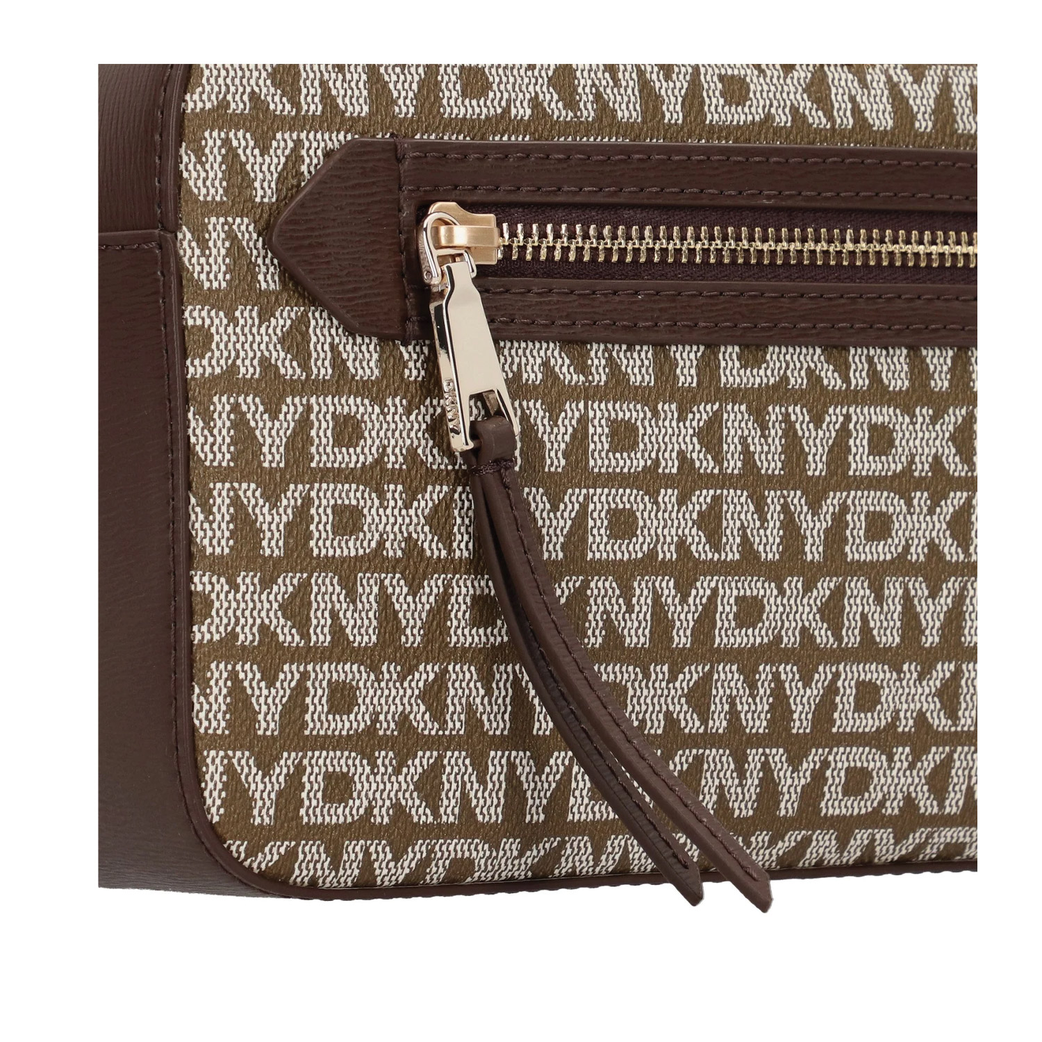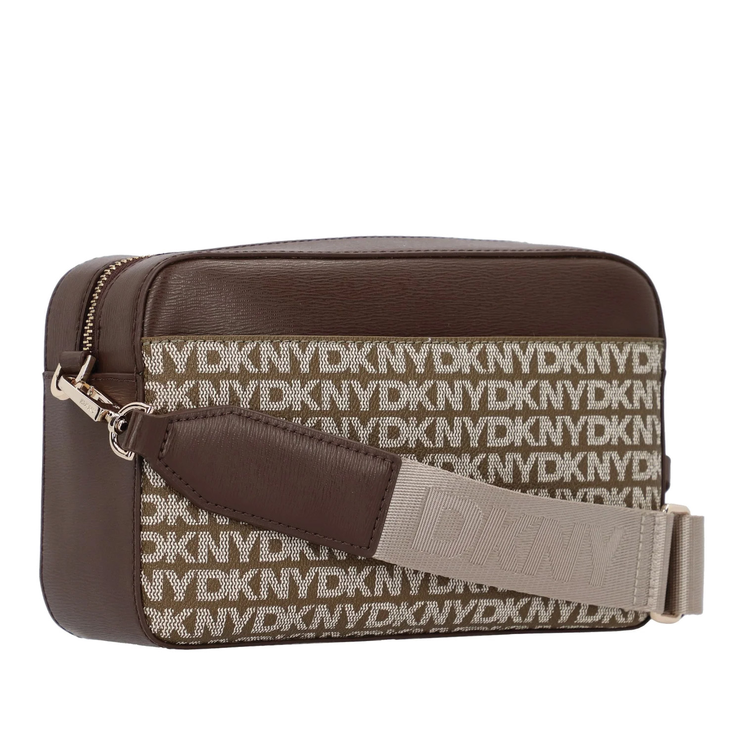 DKNY γυναικεία τσάντα χιαστή, σε μπεζ χρώμα, κατασκευασμένη από οικολογικό δέρμα. Ύψος 14.5εκ., Μήκος 23εκ.