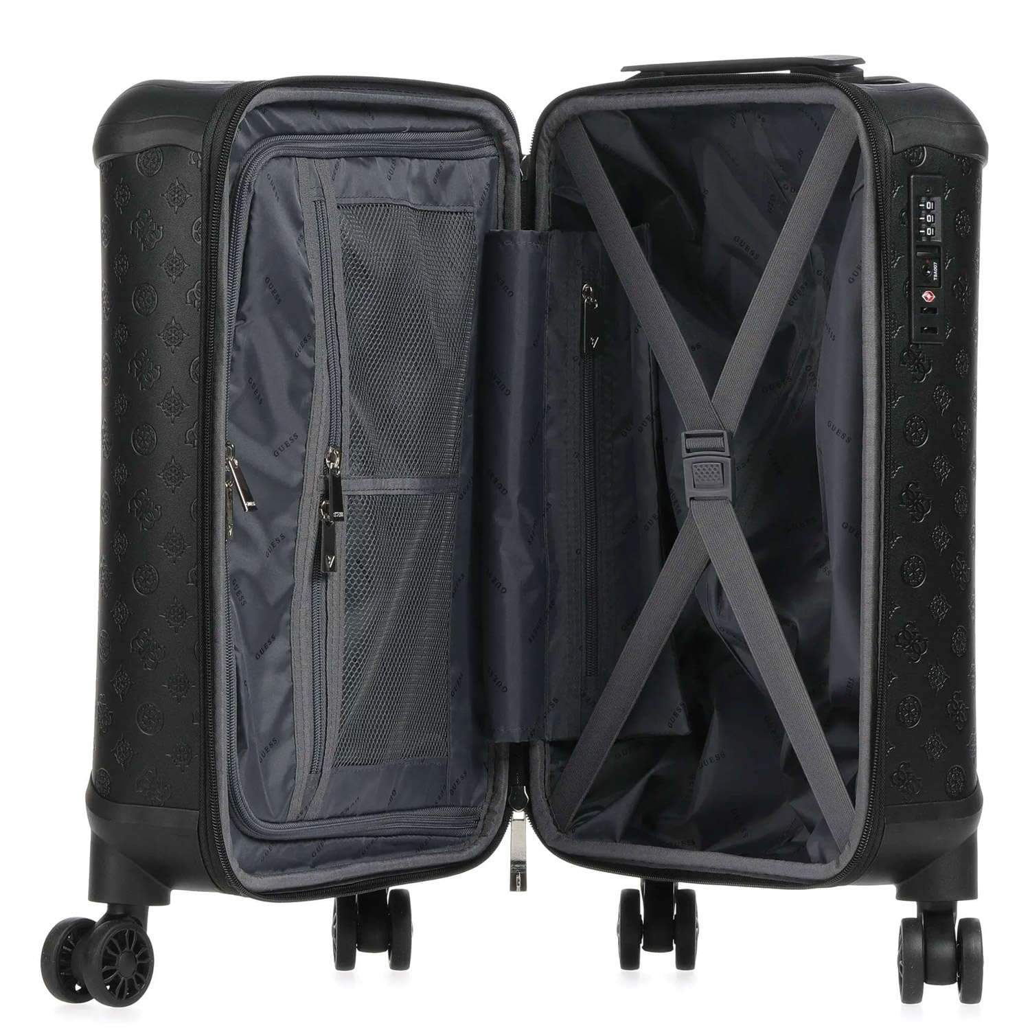 Guess σκληρή βαλίτσα καμπίνας σε μαύρο χρώμα. Διαστάσεις 46εκ. ύψος, 32εκ. μήκος και 22εκ. πλάτος.