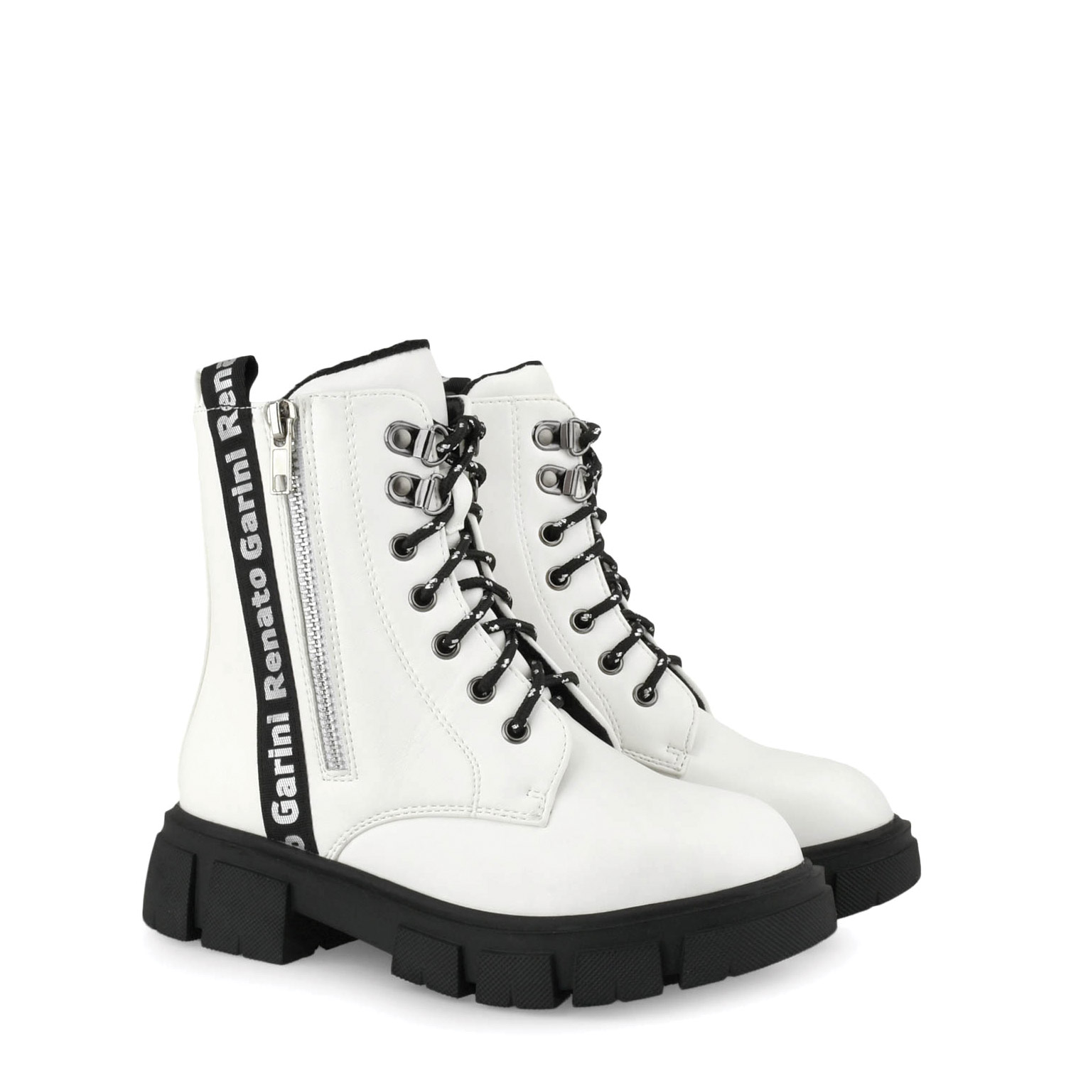 Renato Garini παιδικό μποτάκι, σε λευκό χρώμα, κατασκευασμένο από οικολογικό δέρμα. Ύψος σόλας 3εκ.