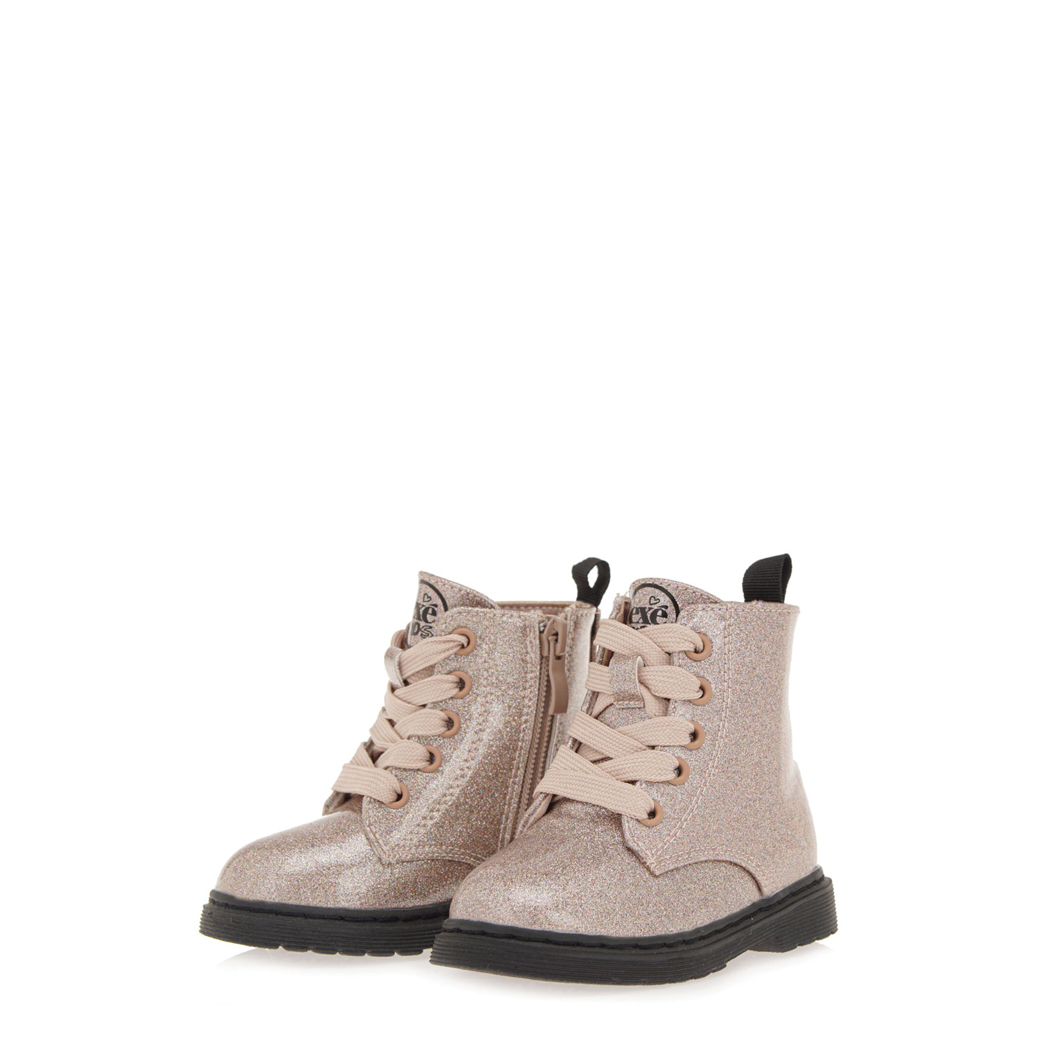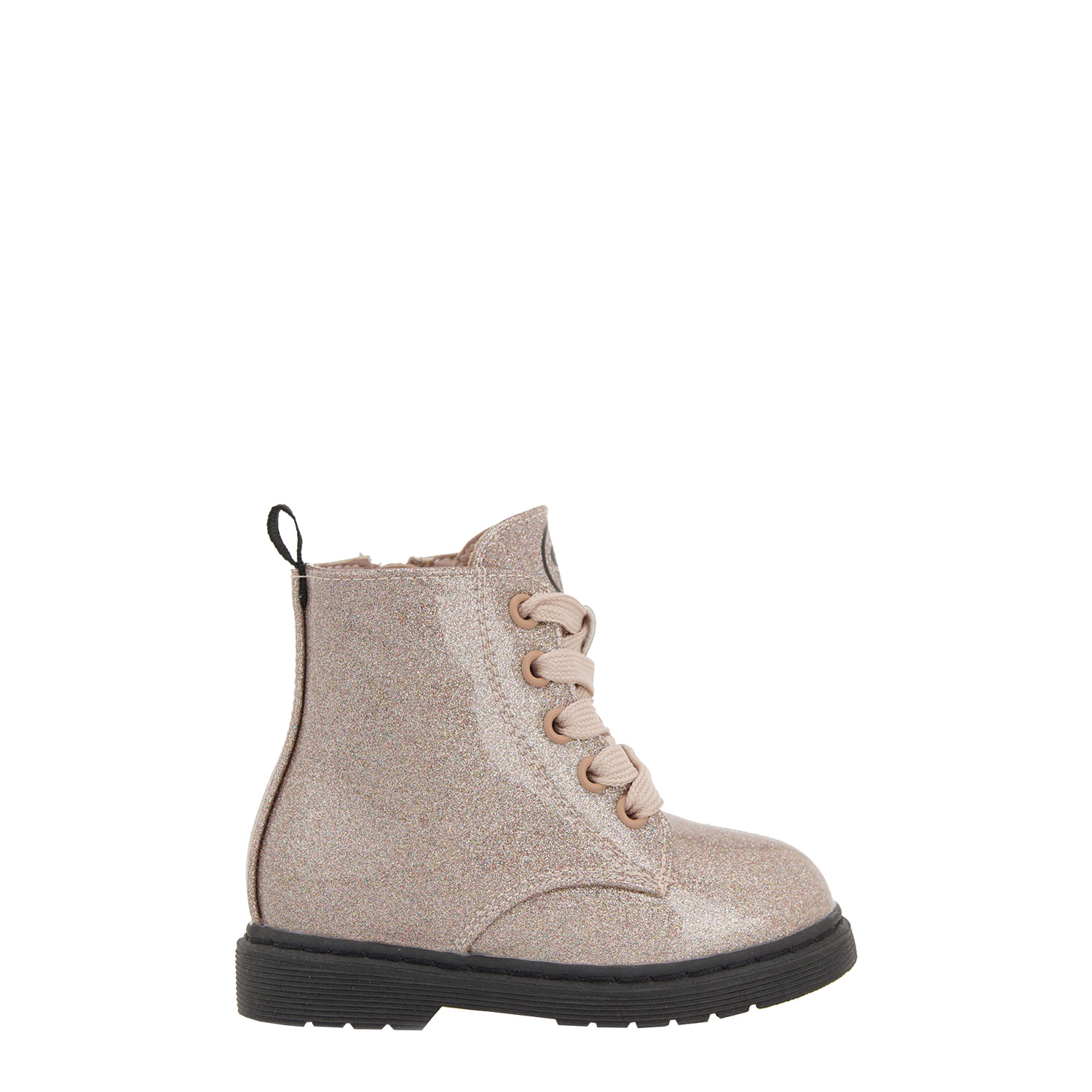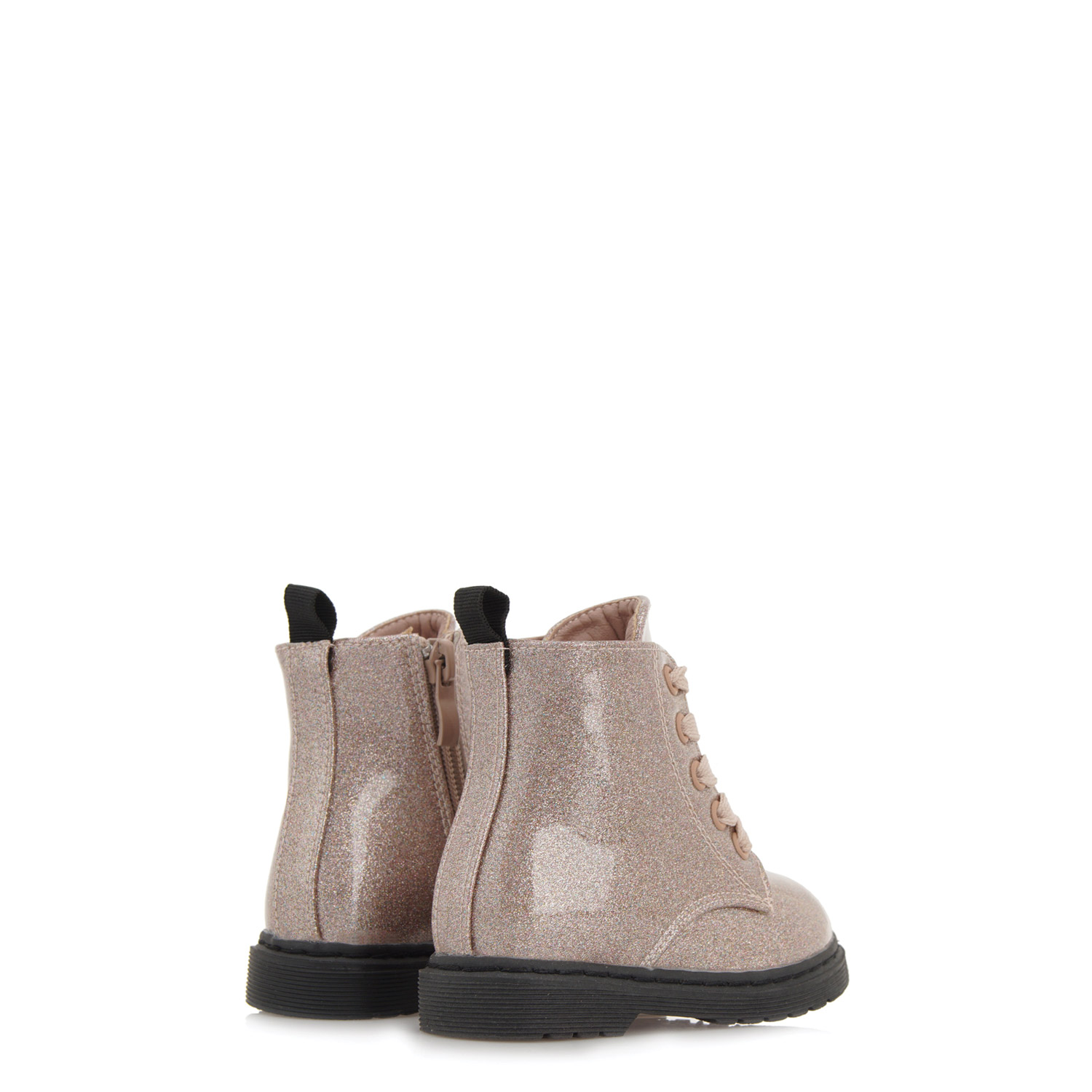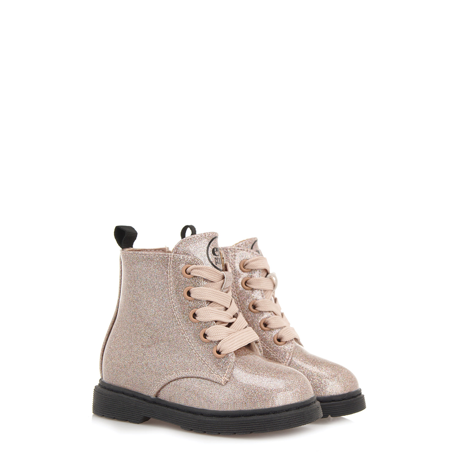 Exe παιδικό μποτάκι, σε nude glitter χρώμα, κατασκευασμένο από οικολογικό δέρμα. Ύψος σόλας 2εκ.