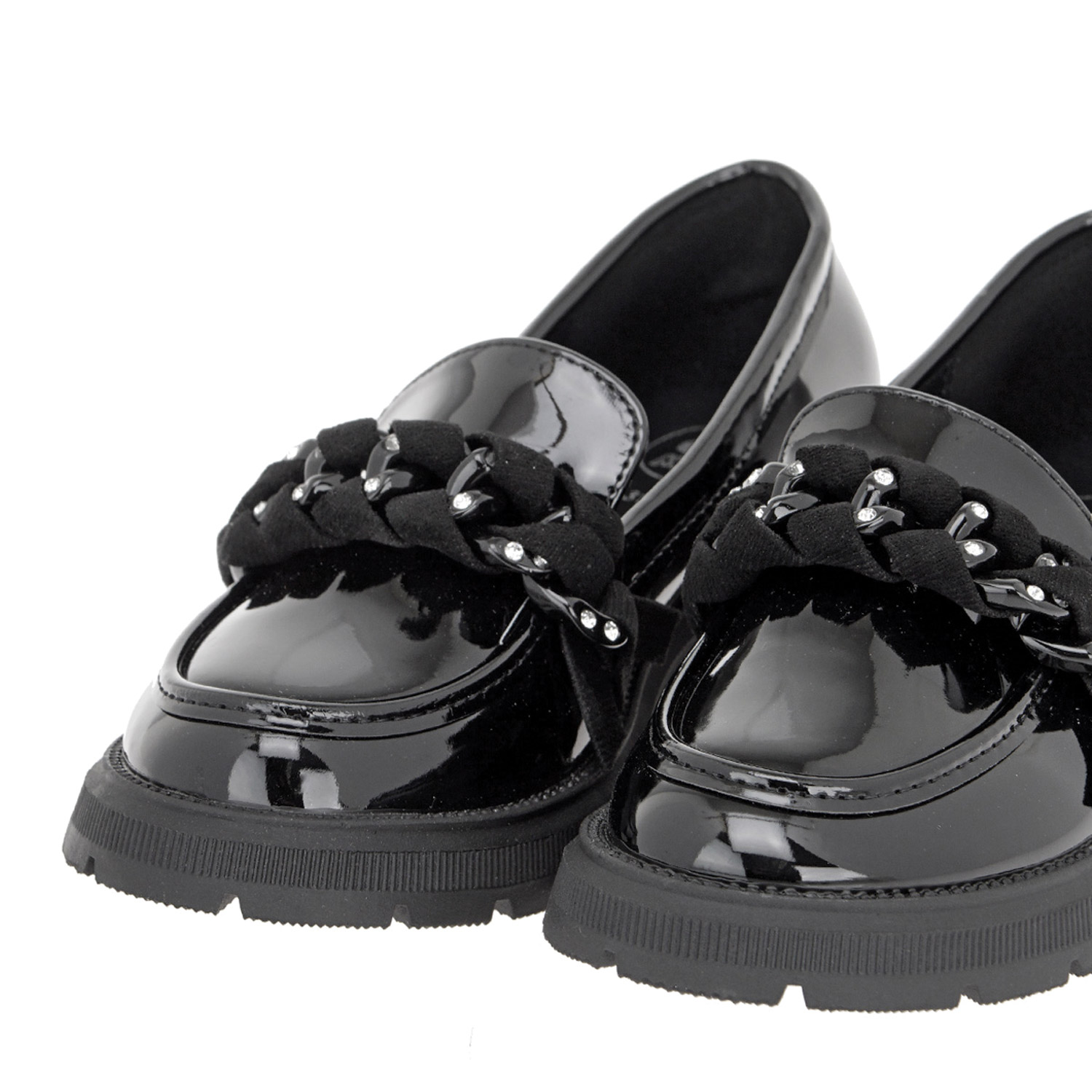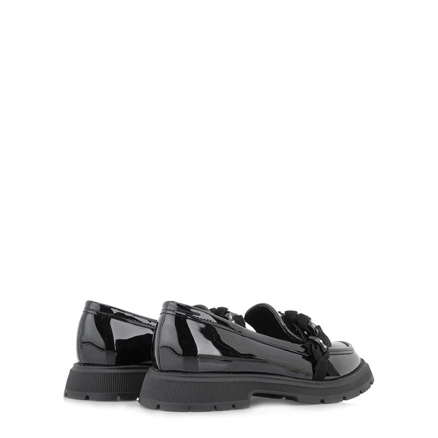 Exe παιδικό loafer, σε μαύρο χρώμα, κατασκευασμένο από λουστρίνι. Ύψος σόλας 3εκ.