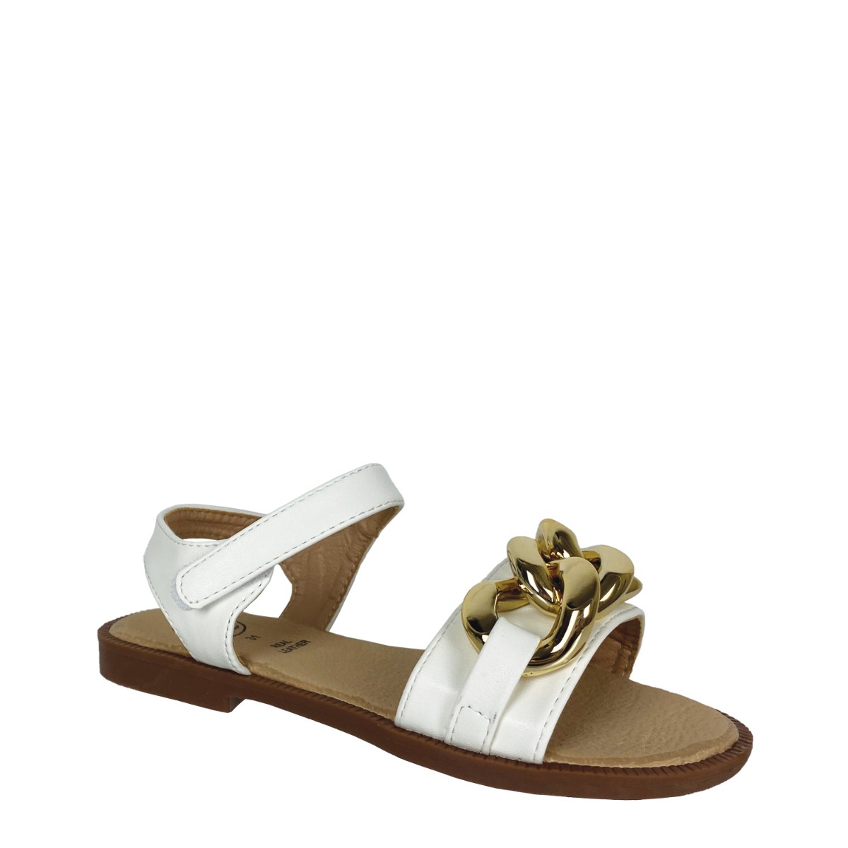 Exe παιδικό πέδιλο σε λευκό χρώμα κατασκευασμένο από οικολογικό δέρμα, με δερμάτινο ανατομικό πατάκι. Ύψος 1εκ.