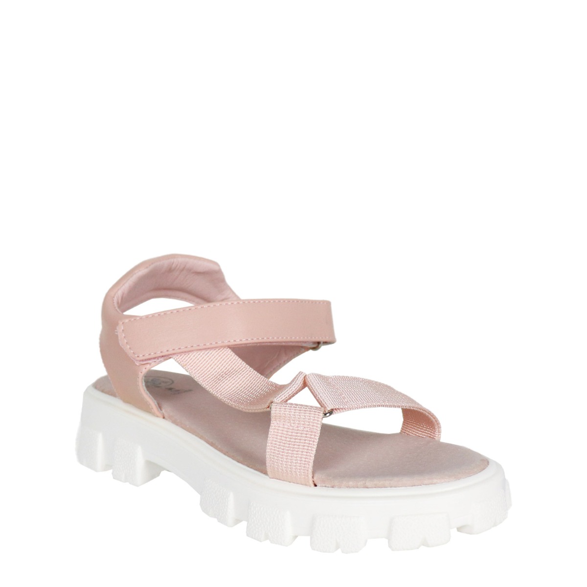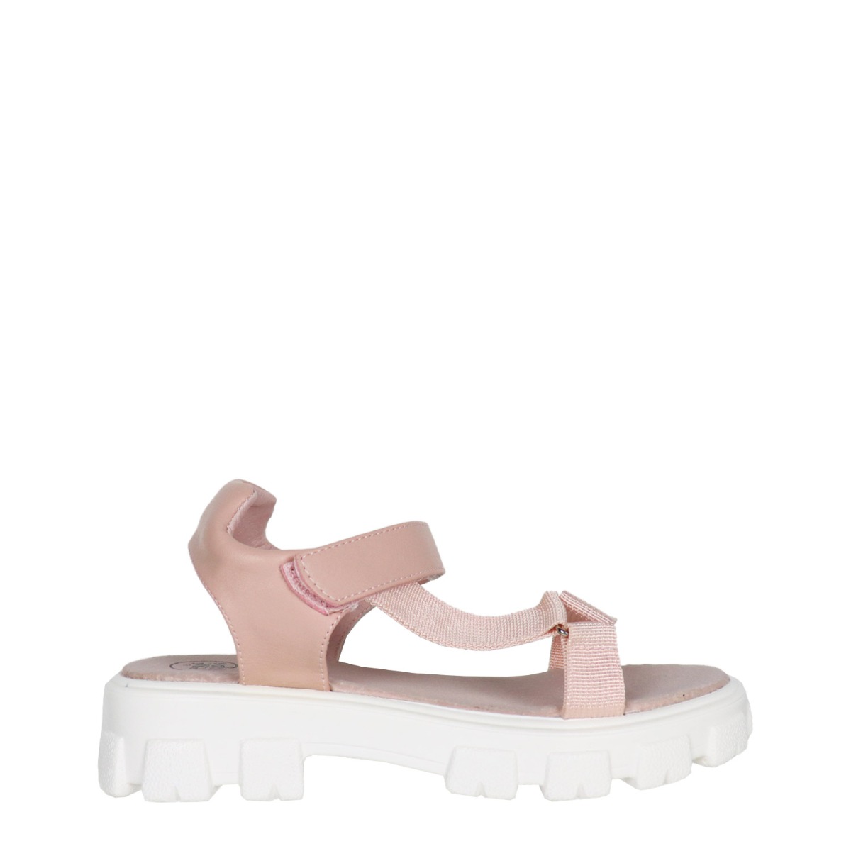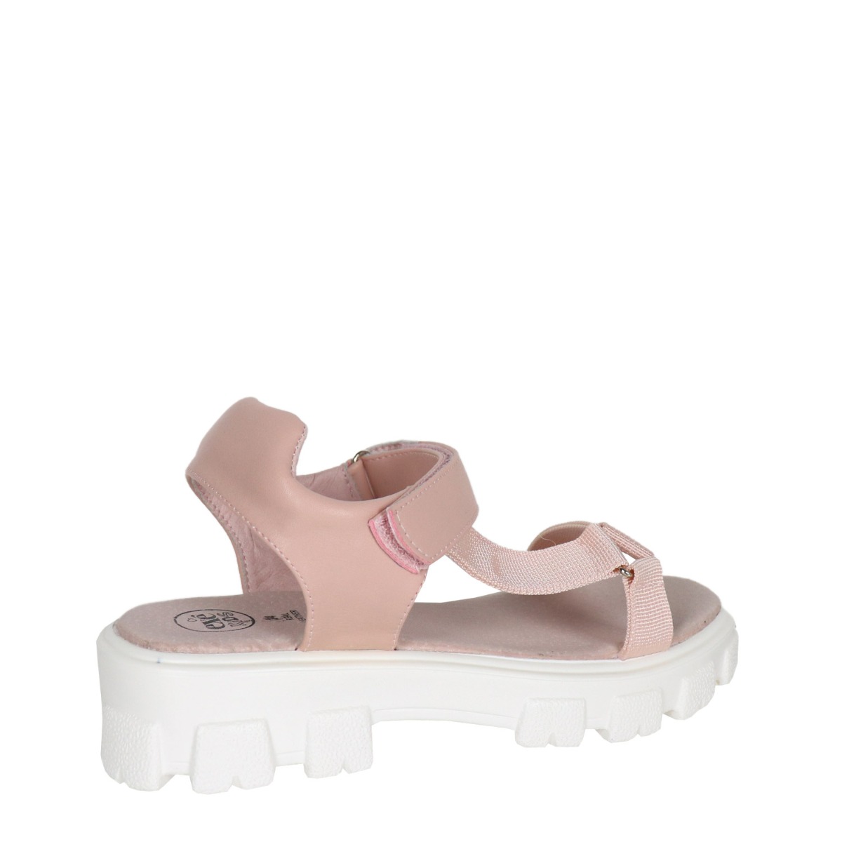 Exe παιδικό πέδιλο σε ροζ χρώμα κατασκευασμένο από οικολογικό δέρμα με δερμάτινο πατάκι. Ύψος σόλας 4 εκ.