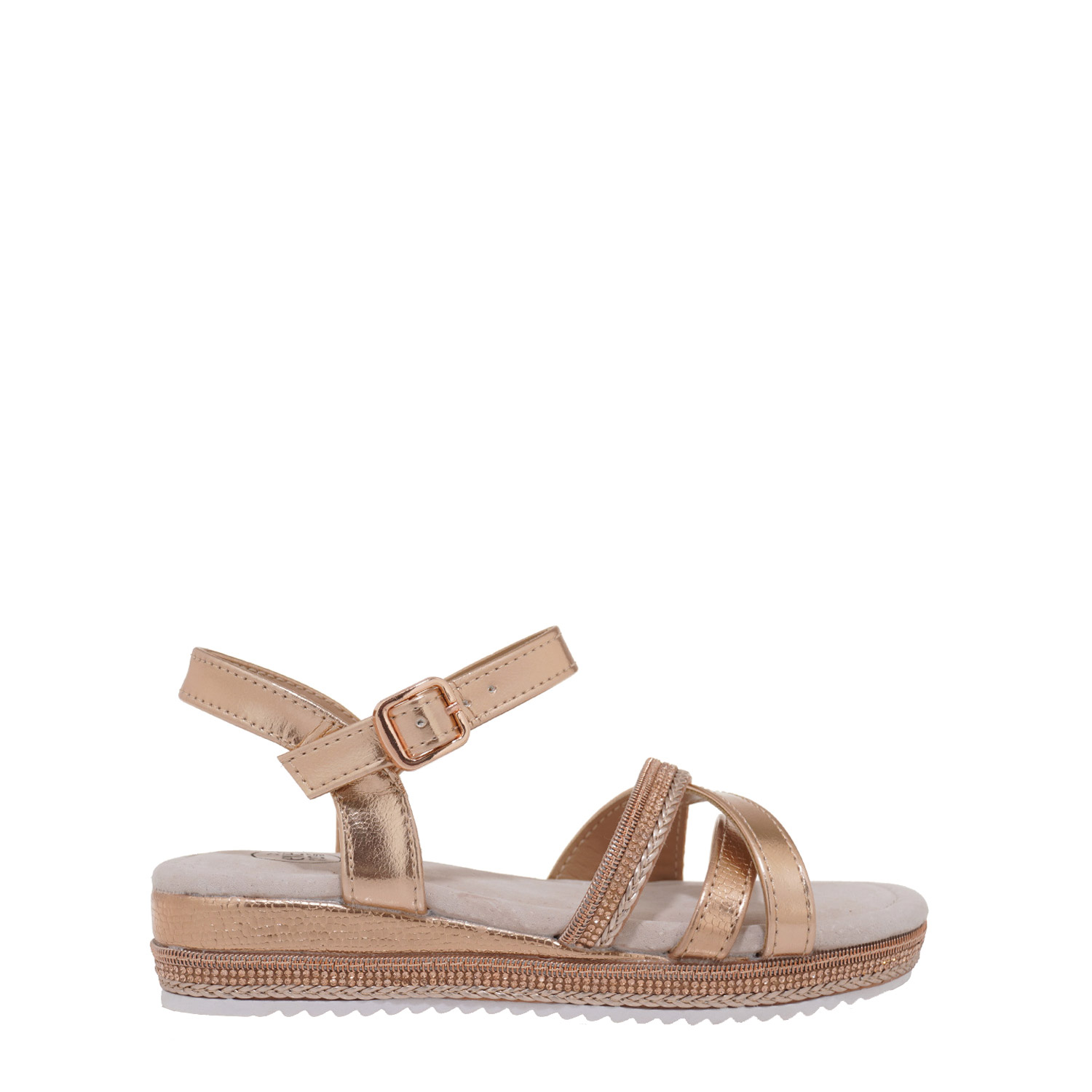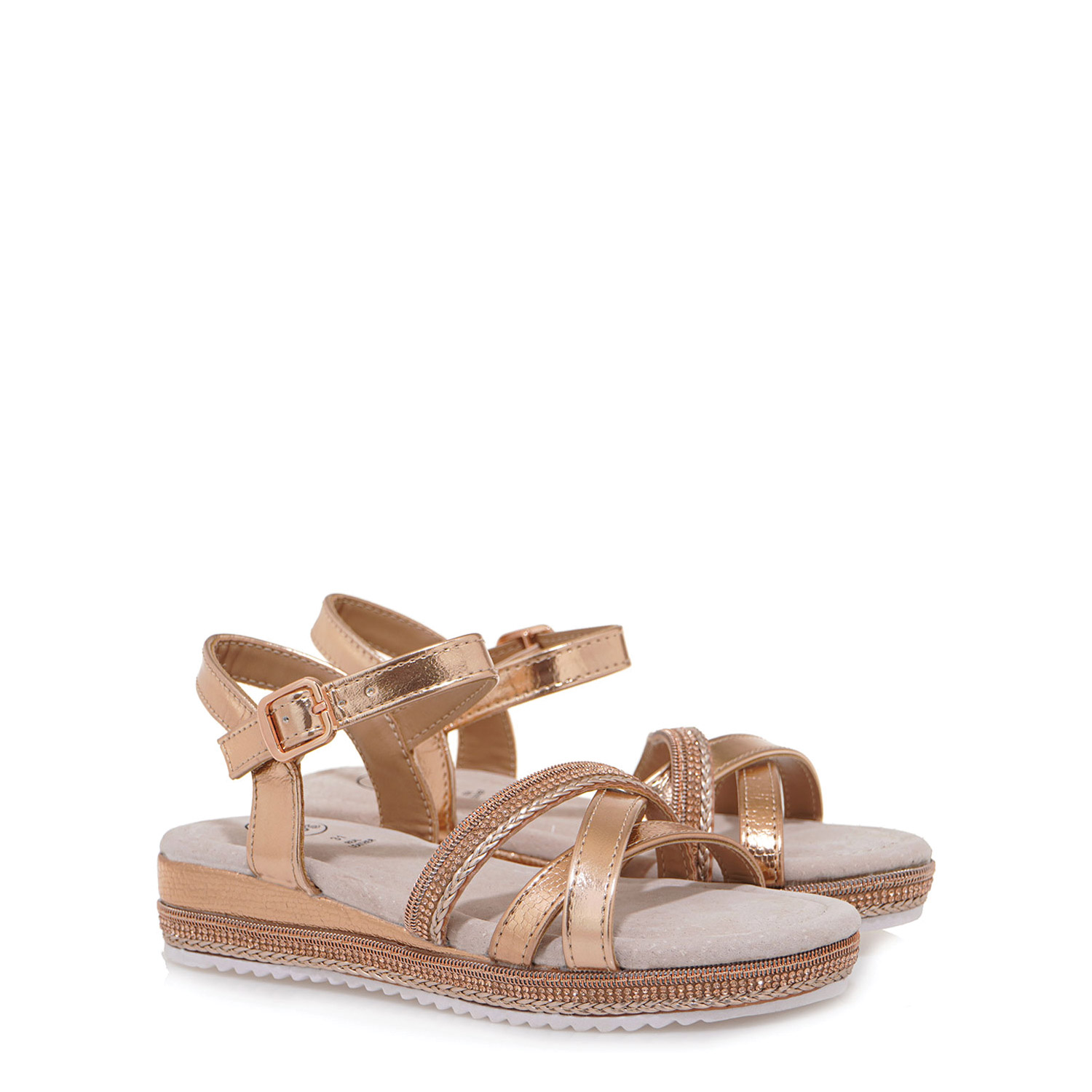 Exe παιδικό πέδιλο, σε ροζ-χρυσό χρώμα, κατασκευασμένο από οικολογικό δέρμα. Ύψος 3.5εκ.