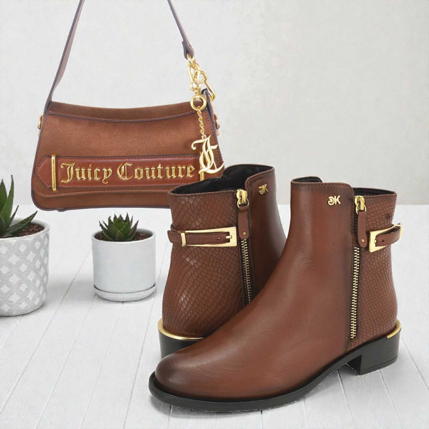 Σετ γυναικείο με έκπτωση. Αποτελείται από Gianna Kazakou γυναικείο μποτάκι και Juicy Couture γυναικεία τσάντα ώμου.