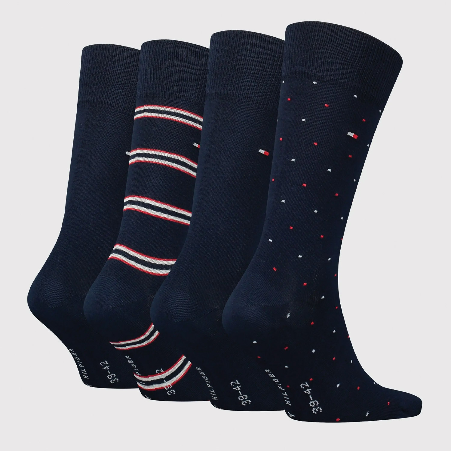 Tommy Hilfiger ανδρικές κάλτσες 4Pack, σε μπλε χρώμα, κατασκευασμένες από 77% βαμβάκι, 21% πολυαμίδιο, 2% ελαστίνη.