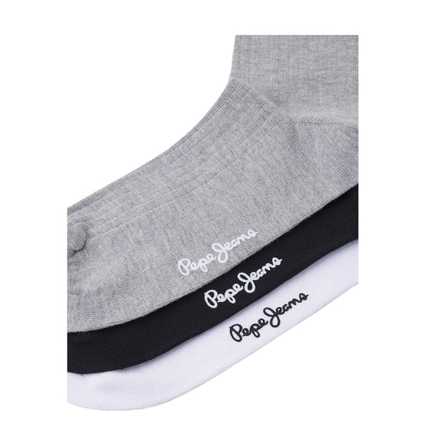 Pepe Jeans ανδρικές κάλτσες 3Pack, σε γκρι-λευκό-μαύρο χρώμα, κατασκευασμένες από 75% βαμβάκι, 23% πολυαμίδιο, 2% ελαστάνη.