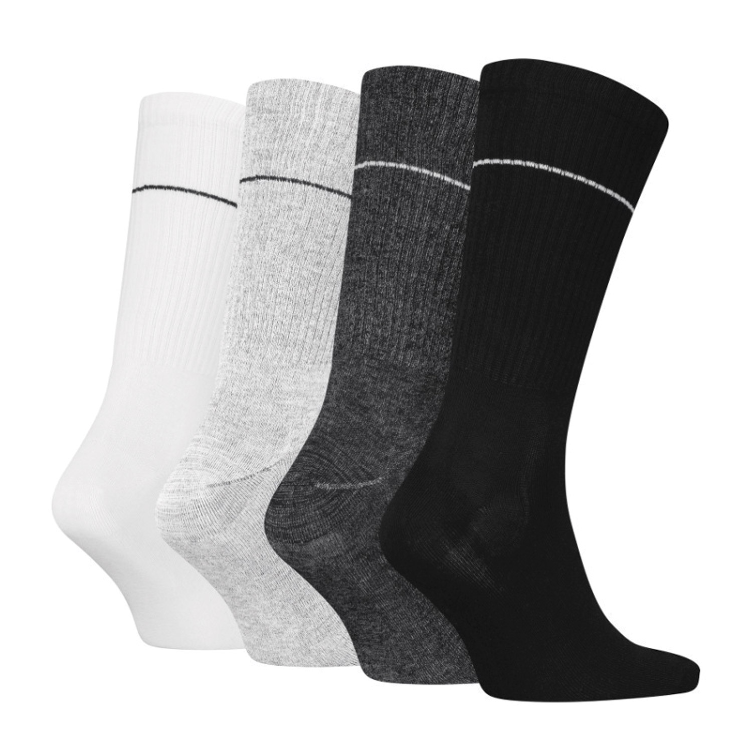 Calvin Klein ανδρικές κάλτσες 4Pack, σε λευκό-μαύρο-γκρι χρώμα, κατασκευασμένες από 65% βαμβάκι, 31% πολυαμίδιο, 4% ελαστάνη.