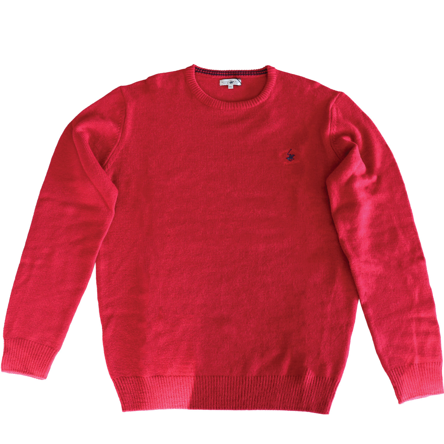 Beverly Hills Polo Club ανδρικό πουλόβερ σε κόκκινο χρώμα κατασκευασμένο από 80% ακρυλικό, 13% μαλλί και 7% νάυλον.