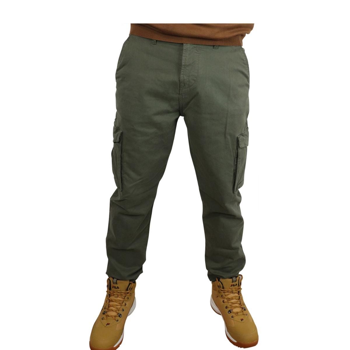 Hamaki-Ho ανδρικό παντελόνι σε λαδί χρώμα κατασκευασμένο από 98% βαμβάκι και 2% ελαστίνη.