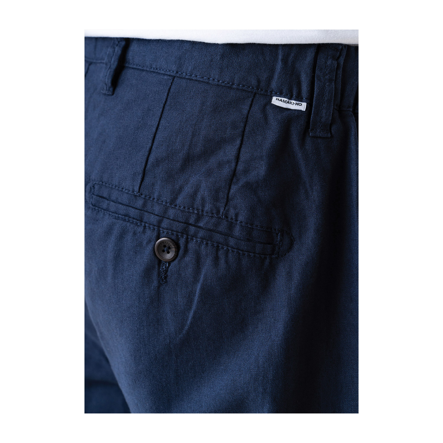 Hamaki-Ho ανδρικό παντελόνι, σε μπλε χρώμα, κατασκευασμένο από 100% λινό.