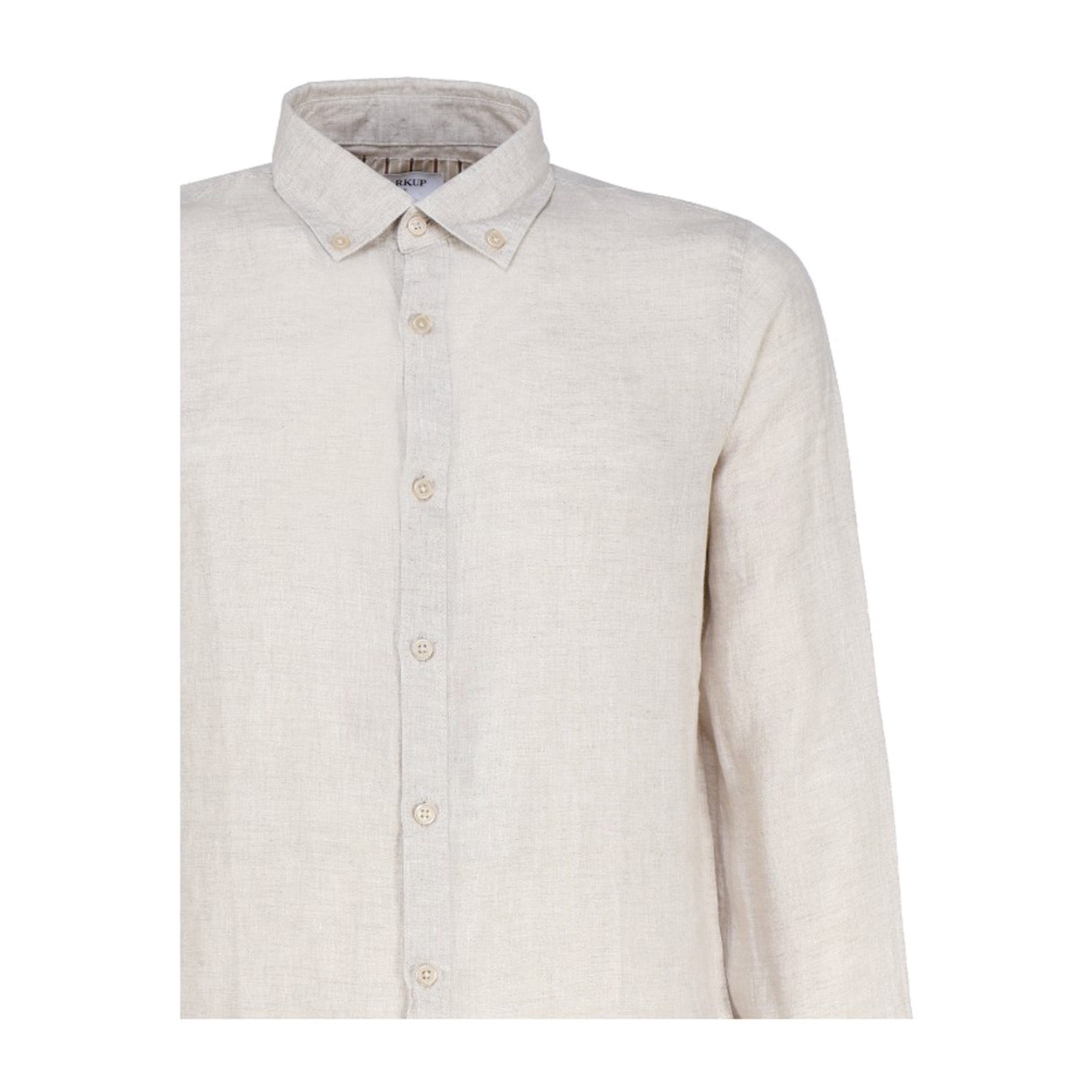 Markup ανδρικό πουκάμισο, σε λευκό χρώμα, κατασκευασμένο από 100% λινό.