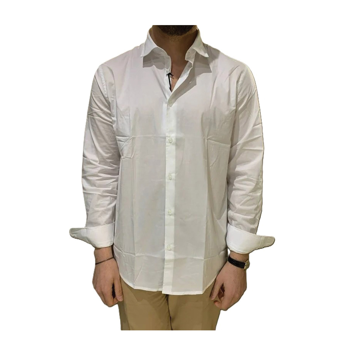 Hamaki-Ho ανδρικό πουκάμισο, σε λευκό χρώμα, κατασκευασμένο από 100% βαμβάκι.