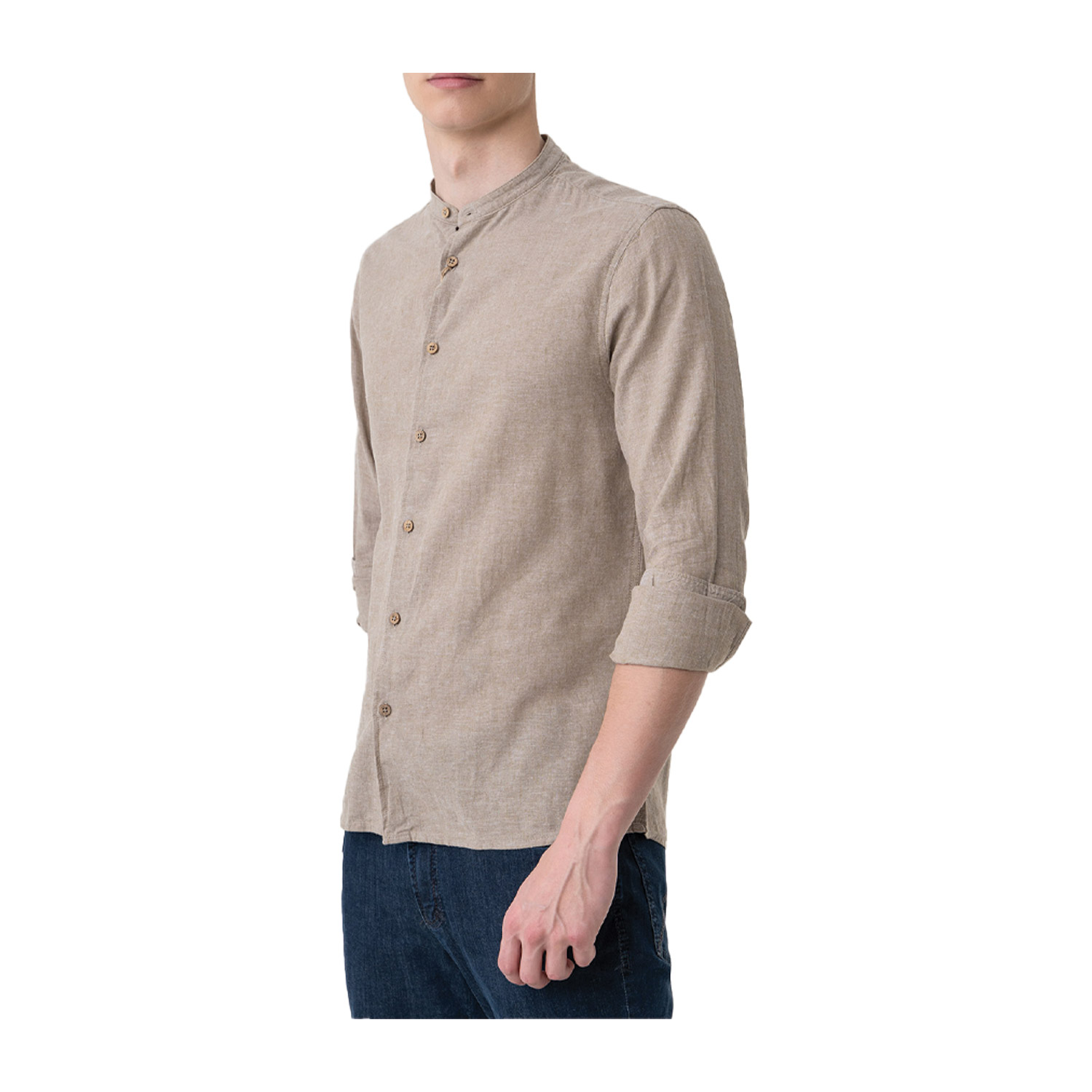 Hamaki-Ho ανδρικό πουκάμισο, σε μπεζ χρώμα, κατασκευασμένο από λινό.