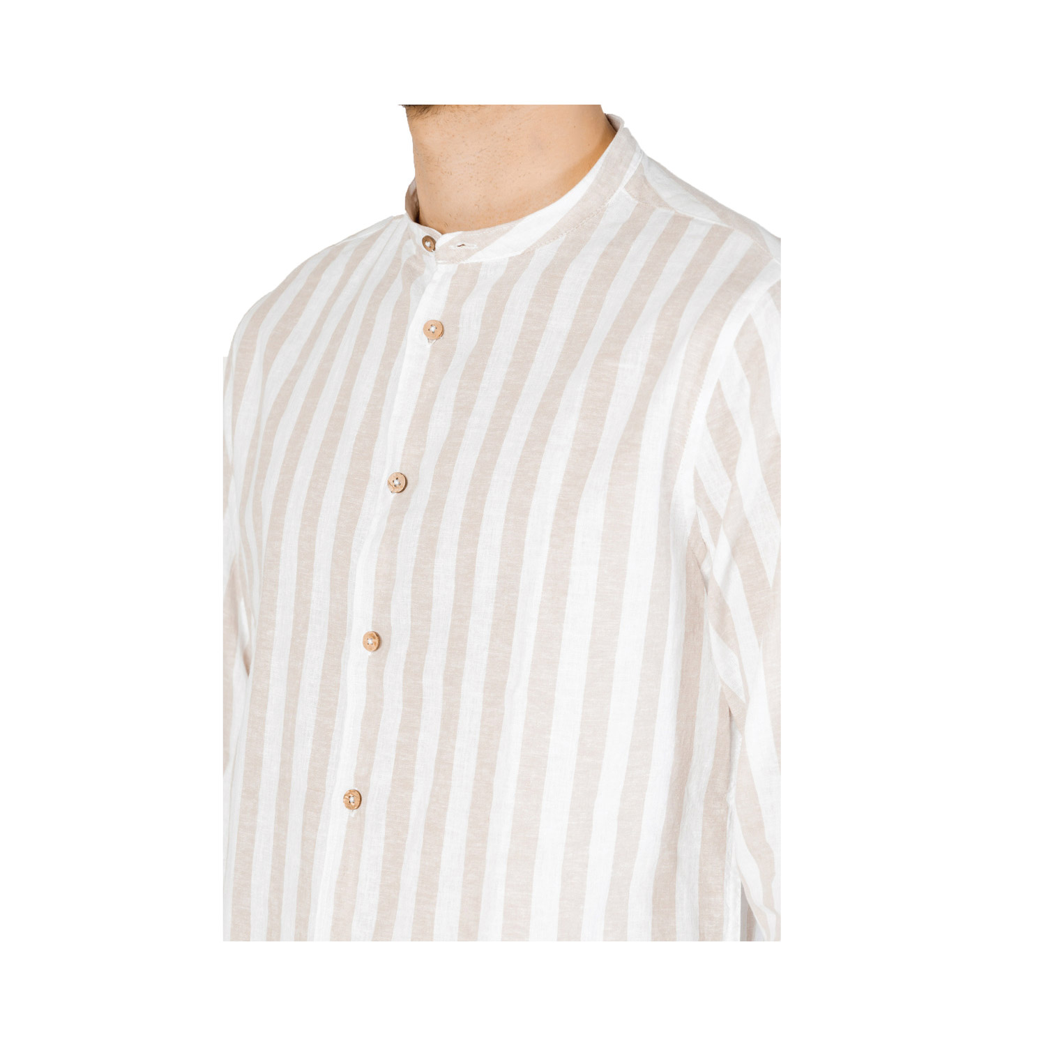Hamaki-Ho ανδρικό πουκάμισο, σε μπεζ χρώμα, κατασκευασμένο από 55% λινό, 45% βαμβάκι.