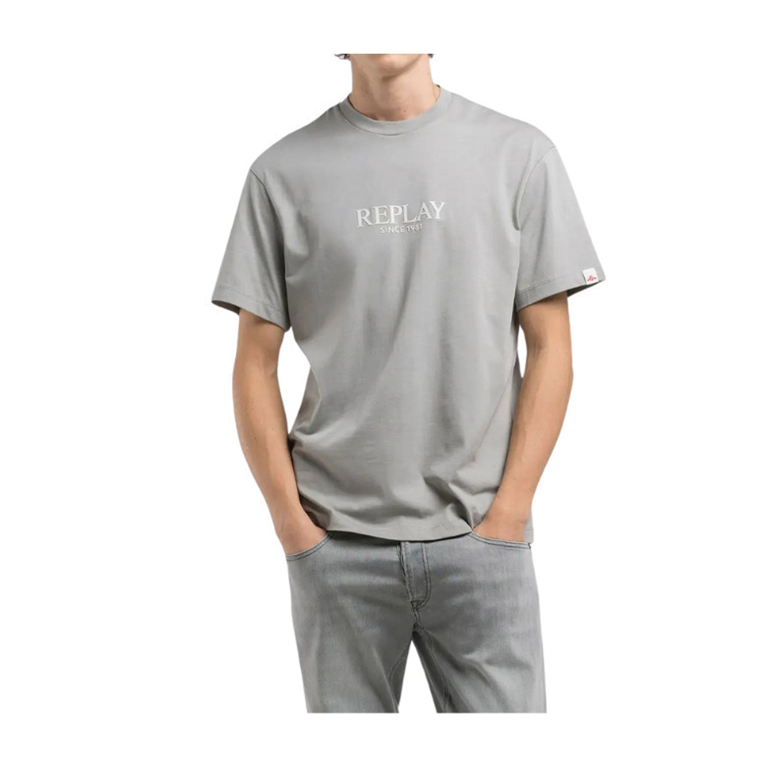 Replay ανδρικό t-shirt, σε γκρι χρώμα, κατασκευασμένο από 100% βαμβάκι.