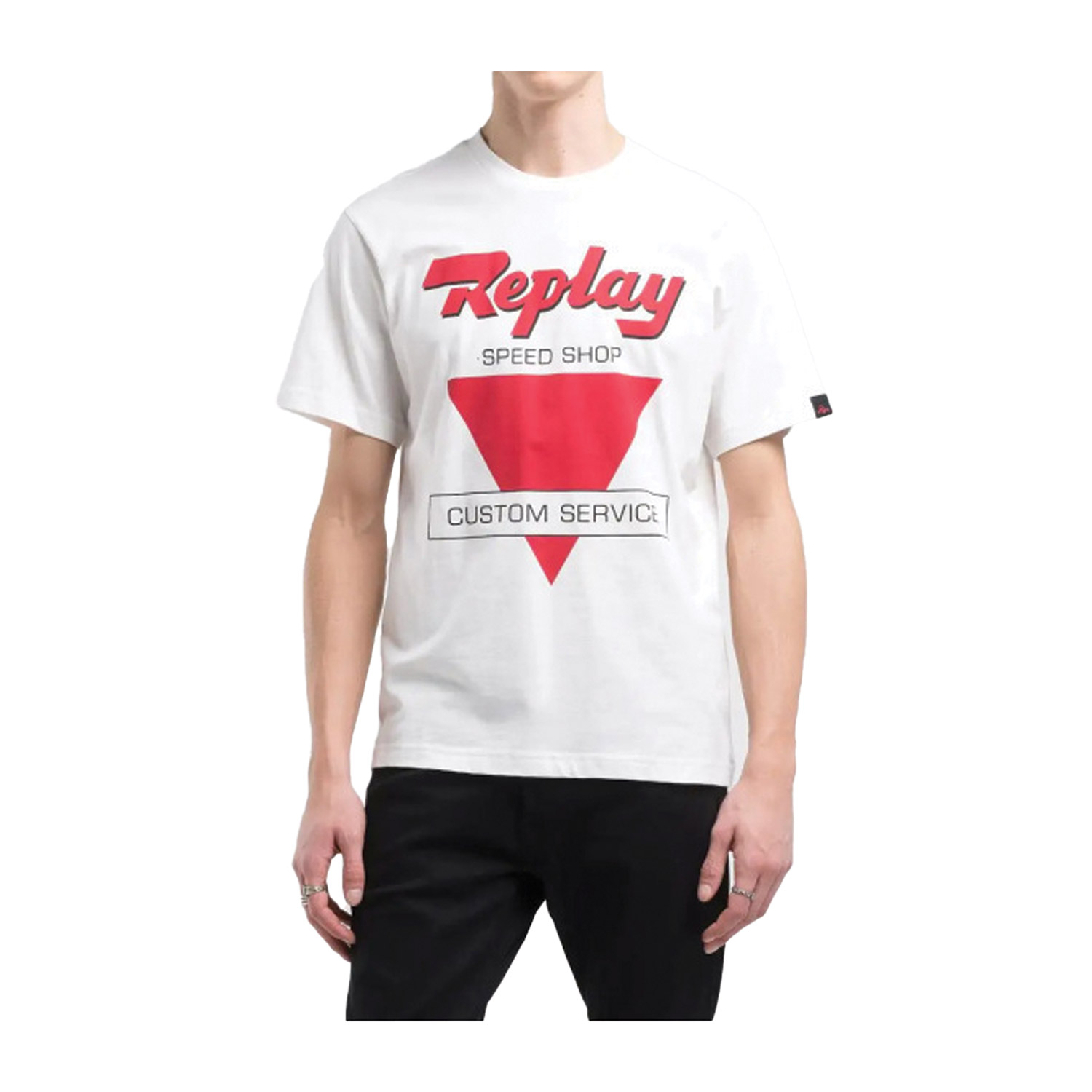 Replay ανδρικό t-shirt, σε λευκό χρώμα, κατασκευασμένο από 100% βαμβάκι.