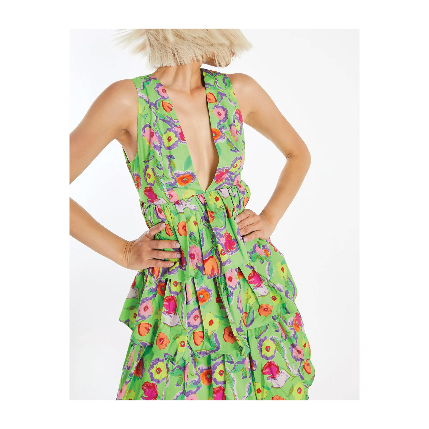 Glamorous γυναικείο φόρεμα σε πράσινο χρώμα κατασκευασμένο από 100% βαμβάκι.