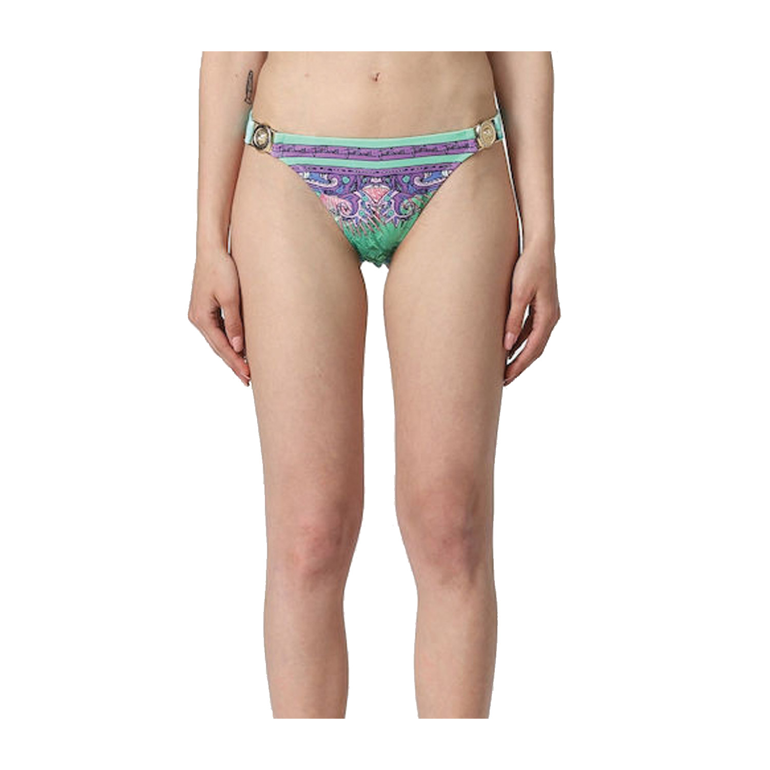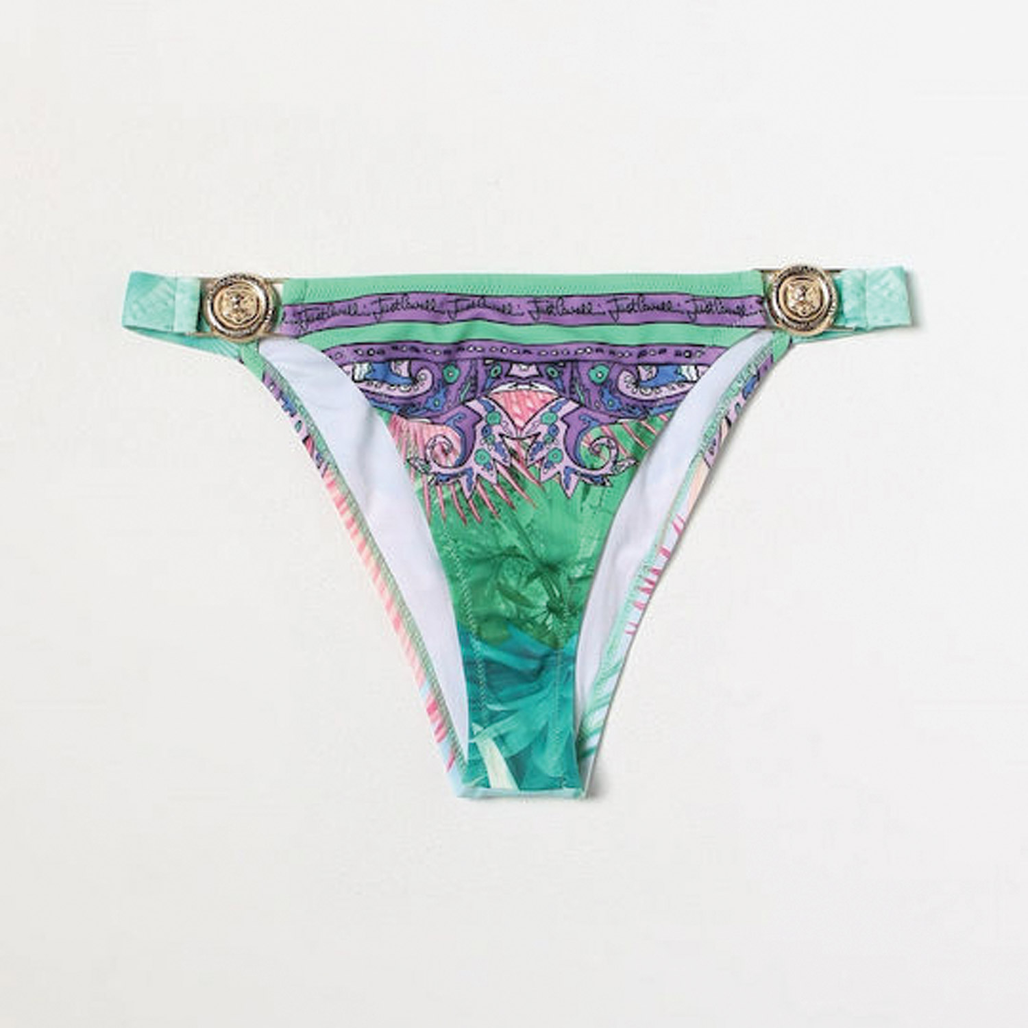 Just Cavalli bikini bottom σε γαλαζοπράσινο χρώμα με μωβ λεπτομέρειες.