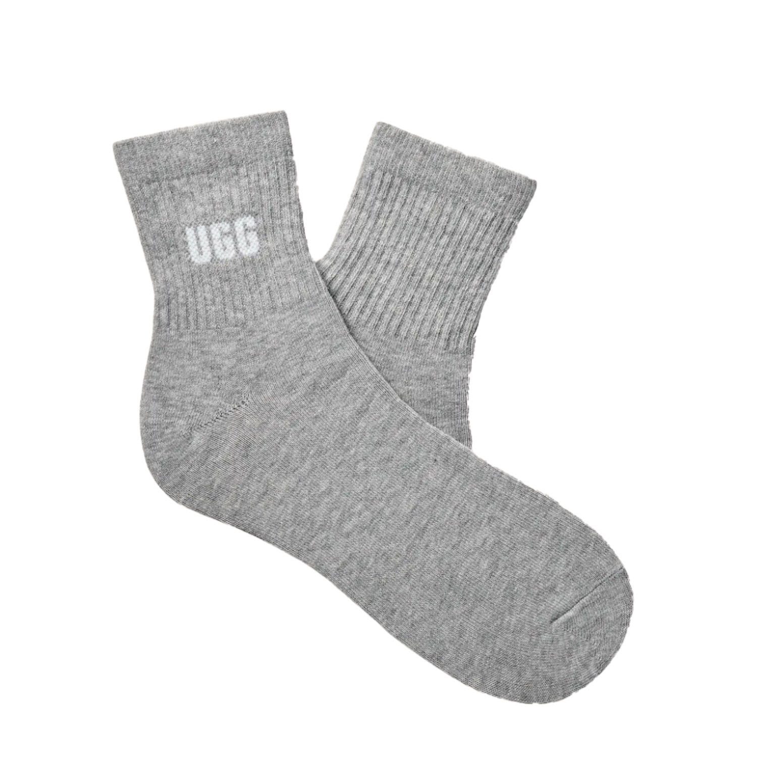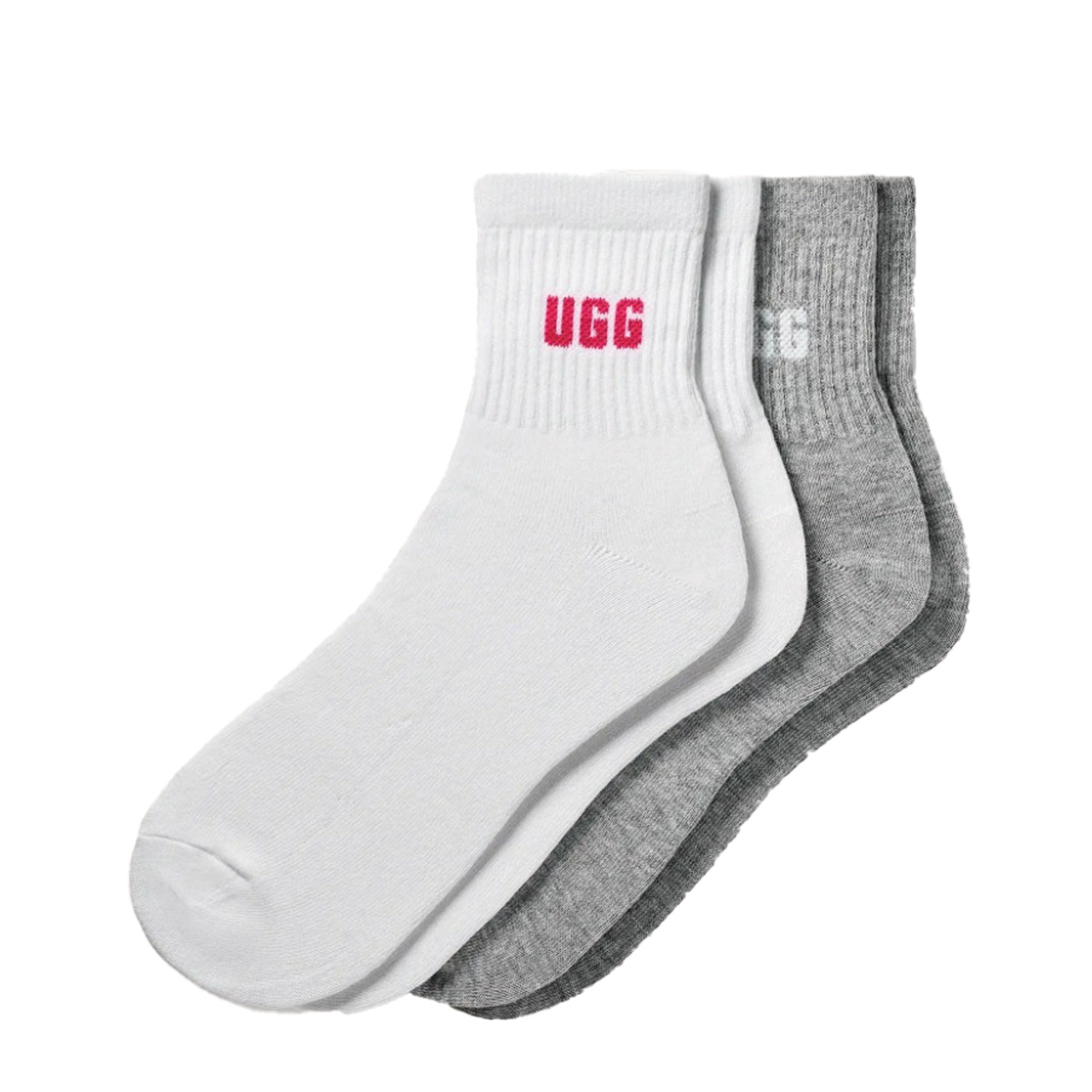 Ugg γυναικείες κάλτσες, σε γκρι-λευκό χρώμα, κατασκευασμένες από 65% βαμβάκι, 28% ανακυκλώσιμο πολυεστέρα, 5% λάστιχο, 2% ελαστόμετρο.