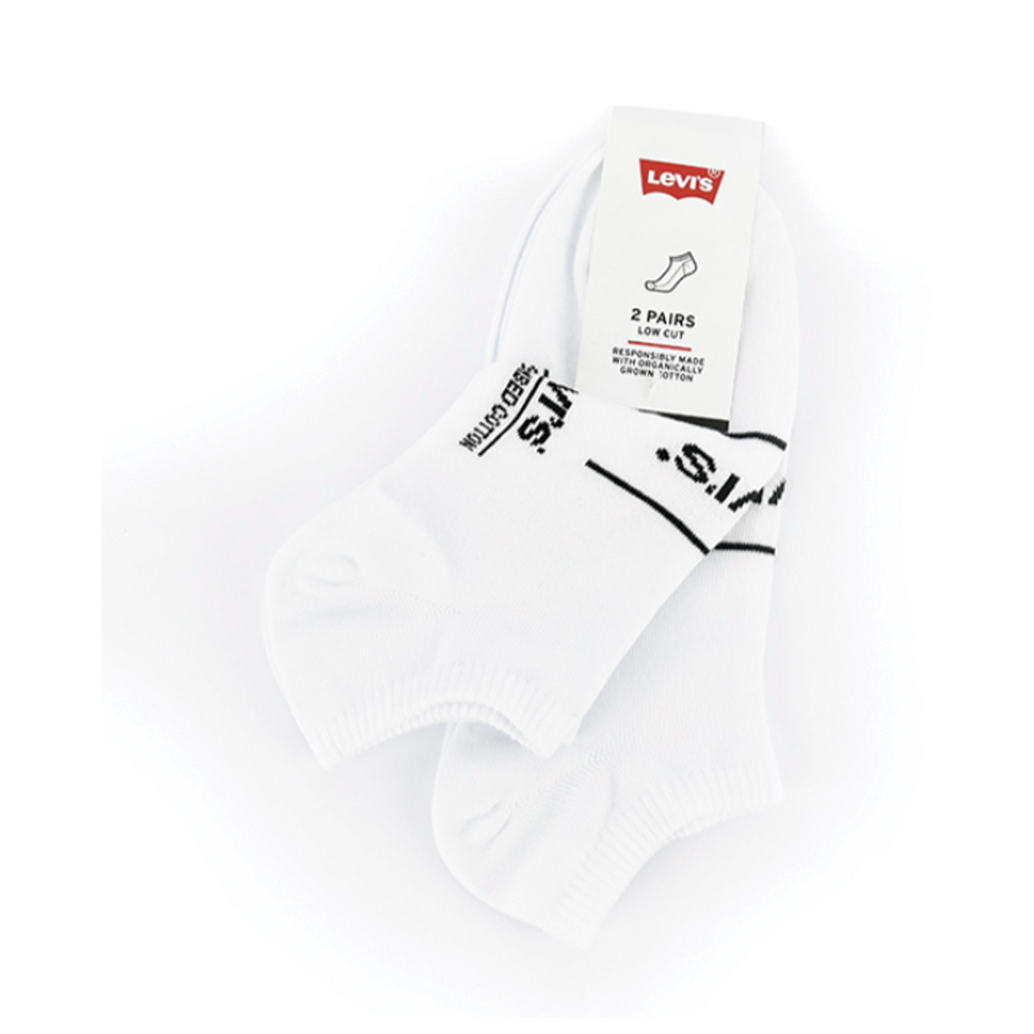 Levi's βαμβακερές κάλτσες 2pack, σε λευκό χρώμα, κατασκευασμένες από 70% οργανικό Βαμβάκι – 28% πολυαμίδιο – 2% ελαστάνη.